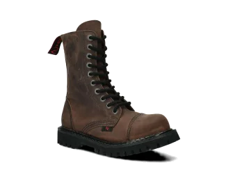 Stylowe, a do tego niezwykle wytrzymałe – tak krótko możemy scharakteryzować proponowane w tej kategorii glany. Warte podkreślenia jest to, że obuwie jest w całości polskie – od projektu, po komponenty potrzebne do jego produkcji. Trwała skóra licowa typu kabir, z której te wysokie buty glany NAGABA 10H są wykonane, pochodzi prosto od rodzimych garbarni, a podeszwa wykonana jest z gumy polskiego producenta.