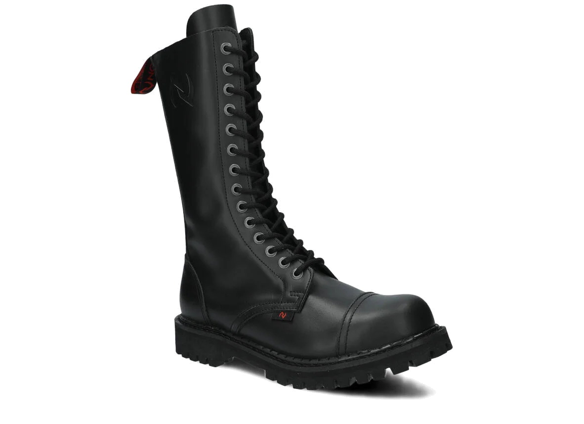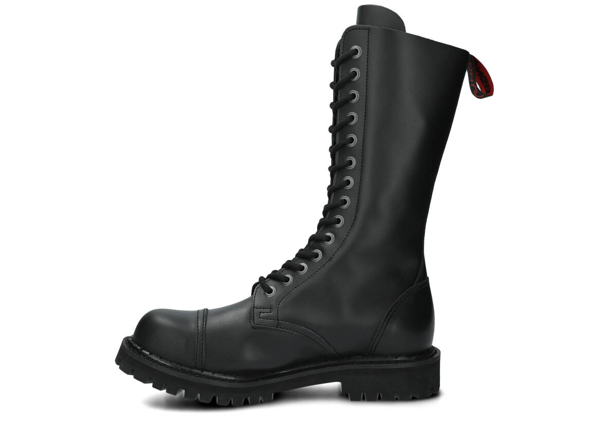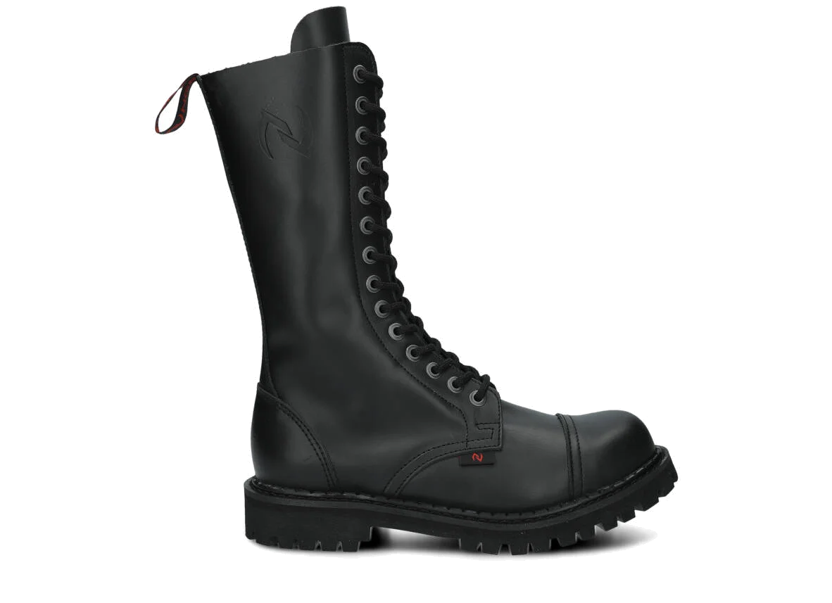 Proponowane 14-dziurkowe, czarne glany NAGABA 14H bosman skórzane zostały wykonane tak, by zapewniały najlepszy komfort. Wyróżniają się precyzją wykonania, zostały wyposażone w podeszwę wykonaną z prawdziwej polskiej gumy z ozdobnymi śrubami oraz metalowym logotypem marki. Dzięki temu świetnie sprawdzą się podczas wyjścia na koncert ze znajomymi lub wspólnego wypadu na miasto. Dodatkowe wzmocnienia w postaci stalowych nosków (ang. steel toe) i polska produkcja sprawiają, że przy odpowiedniej pielęgnacji będziemy mogli cieszyć się prezentowanymi czarnymi glanami NAGABA 14H bosman skórzanymi przez wiele lat. Z pewnością spełnią swoje zadanie na co dzień, dopasowane do stylowej kurtki i modnych dodatków.