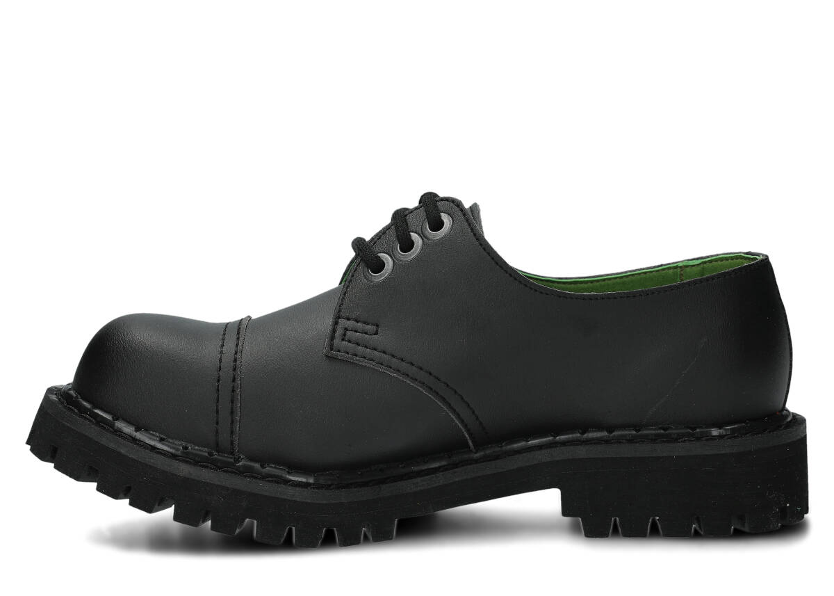 Materiał higroskopijny, odpowiednia przepuszczalność, higieniczność. Dodatkowo materiał jest trwały, wytrzymały na wielokrotne zginanie i estetyczny. W żaden sposób nie odbiega wizualnie od tradycyjnych odpowiedników. Buty z materiałów skóropodobnych dostępne są w wielu kolorach i krojach, dzięki czemu każdy klient znajdzie odpowiednią parę dla siebie. Prezentowane glany NAGABA 3H vegan czarne zostały również wyposażone w stalowy nosek (ang. steel toe). Ponadto mają podeszwę wykonaną z prawdziwej polskiej gumy z ozdobnymi śrubami oraz metalowym logotypem marki. Doskonale sprawdzą się nie tylko do pracy, szkoły czy na uczelnię, ale także podczas wyjścia na koncert. Zakup solidnych glanów NAGABA 3H czarnych vegan to inwestycja na lata, tylko nie zapomnij ich właściwie pielęgnować.