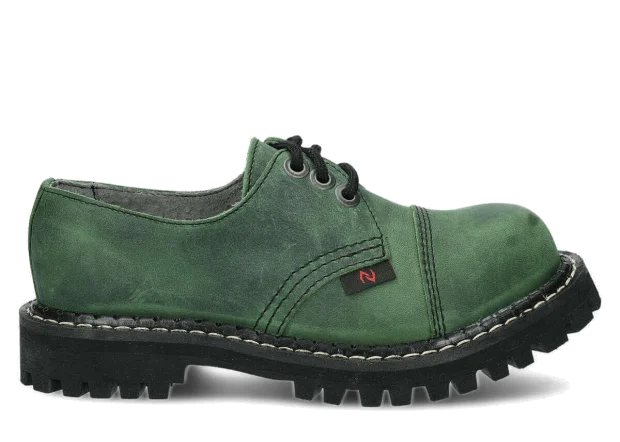 Proponowane 3-dziurkowe, zielone glany NAGABA 3H crazy skórzane zostały wykonane tak, by zapewniały najlepszy komfort. Wyróżniają się precyzją wykonania, zostały wyposażone w podeszwę wykonaną z prawdziwej polskiej gumy z ozdobnymi śrubami oraz metalowym logotypem marki. Dzięki temu świetnie sprawdzą się podczas wyjścia na koncert ze znajomymi lub wspólnego wypadu na miasto. Dodatkowe wzmocnienia w postaci stalowych nosków (ang. steel toe) i polska produkcja sprawiają, że przy odpowiedniej pielęgnacji będziemy mogli cieszyć się prezentowanymi zielonymi glanami NAGABA 3H crazy skórzanymi przez wiele lat. Z pewnością spełnią swoje zadanie na co dzień, dopasowane do stylowej kurtki i modnych dodatków.