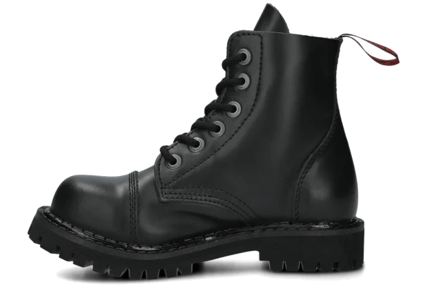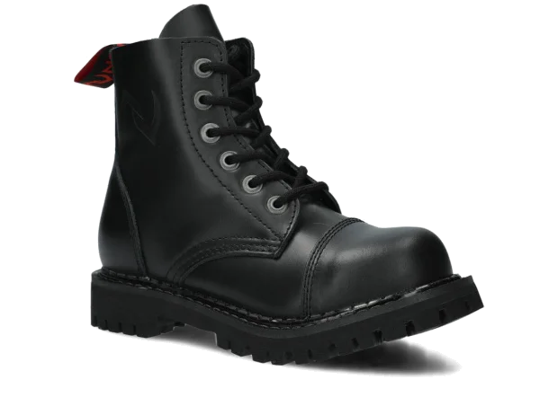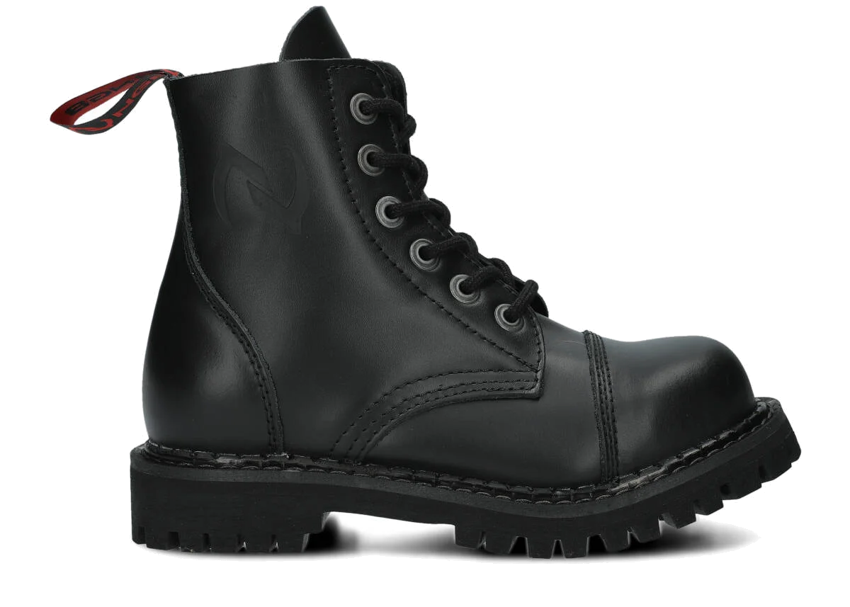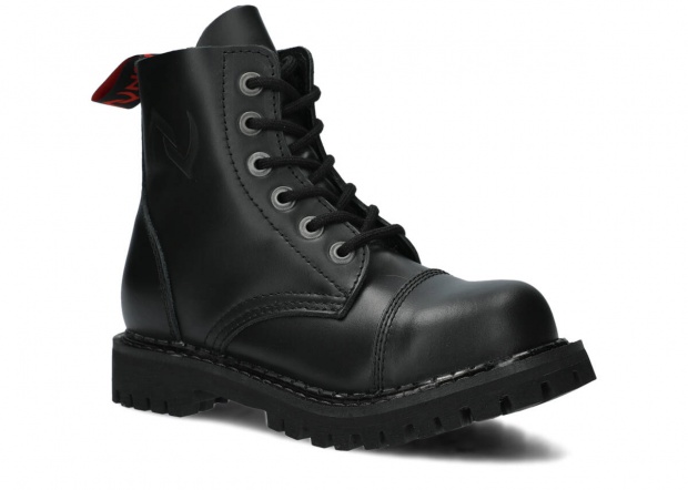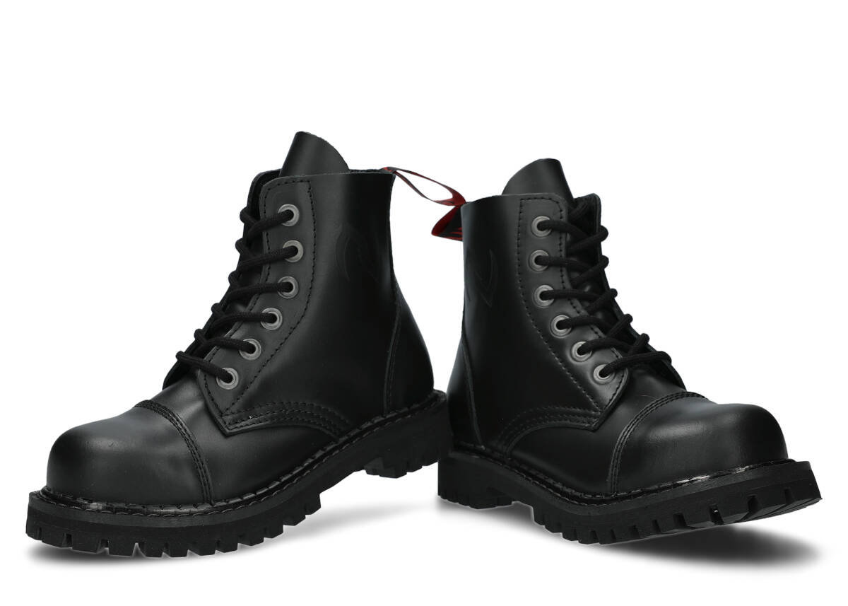 Proponowane 6-dziurkowe, czarne glany NAGABA 6H bosman skórzane zostały wykonane tak, by zapewniały najlepszy komfort. Wyróżniają się precyzją wykonania, zostały wyposażone w podeszwę wykonaną z prawdziwej polskiej gumy z ozdobnymi śrubami oraz metalowym logotypem marki. Dzięki temu świetnie sprawdzą się podczas wyjścia na koncert ze znajomymi lub wspólnego wypadu na miasto. Dodatkowe wzmocnienia w postaci stalowych nosków (ang. steel toe) i polska produkcja sprawiają, że przy odpowiedniej pielęgnacji będziemy mogli cieszyć się prezentowanymi czarnymi glanami NAGABA 6H bosman skórzanymi przez wiele lat. Z pewnością spełnią swoje zadanie na co dzień, dopasowane do stylowej kurtki i modnych dodatków.