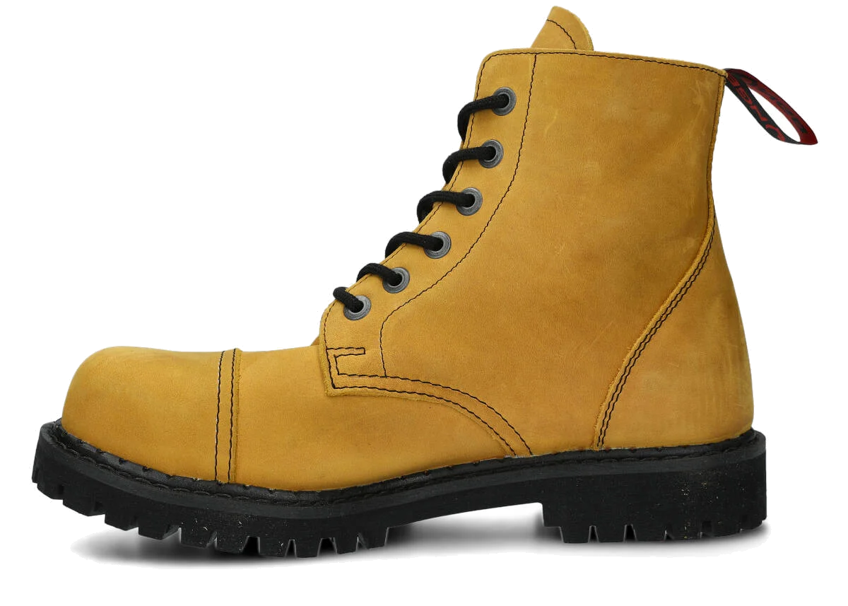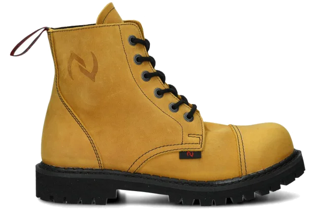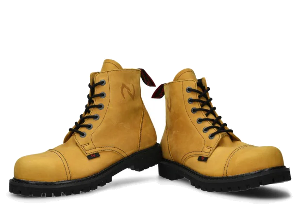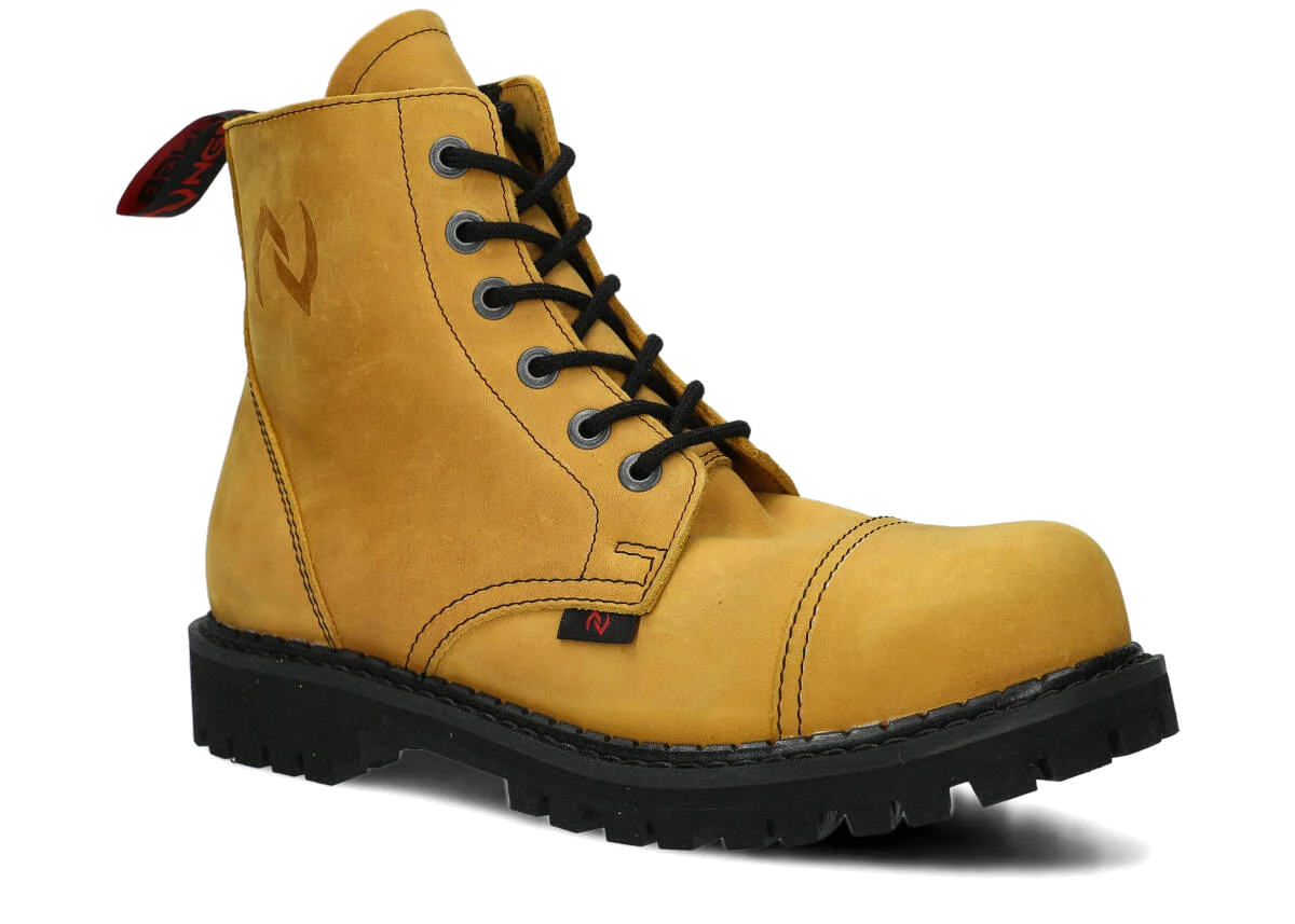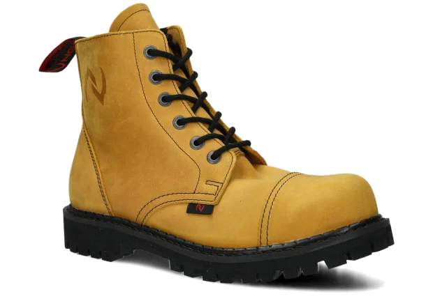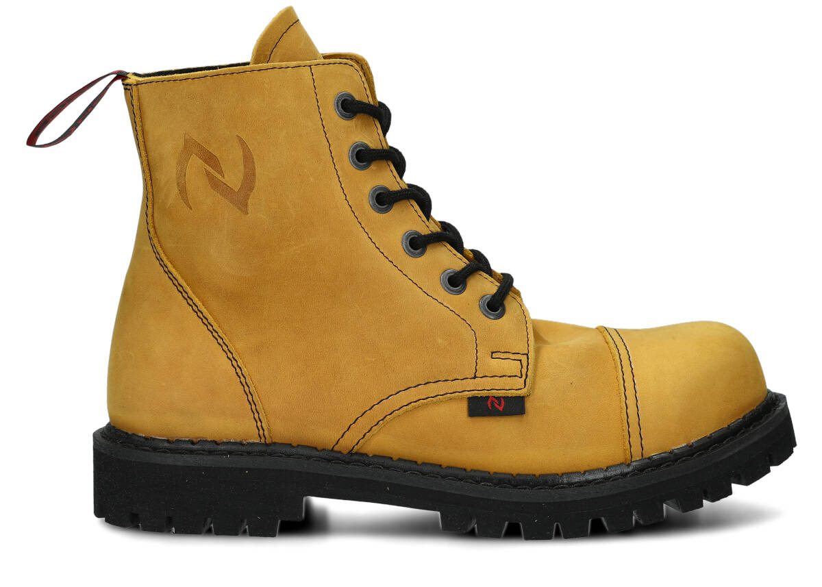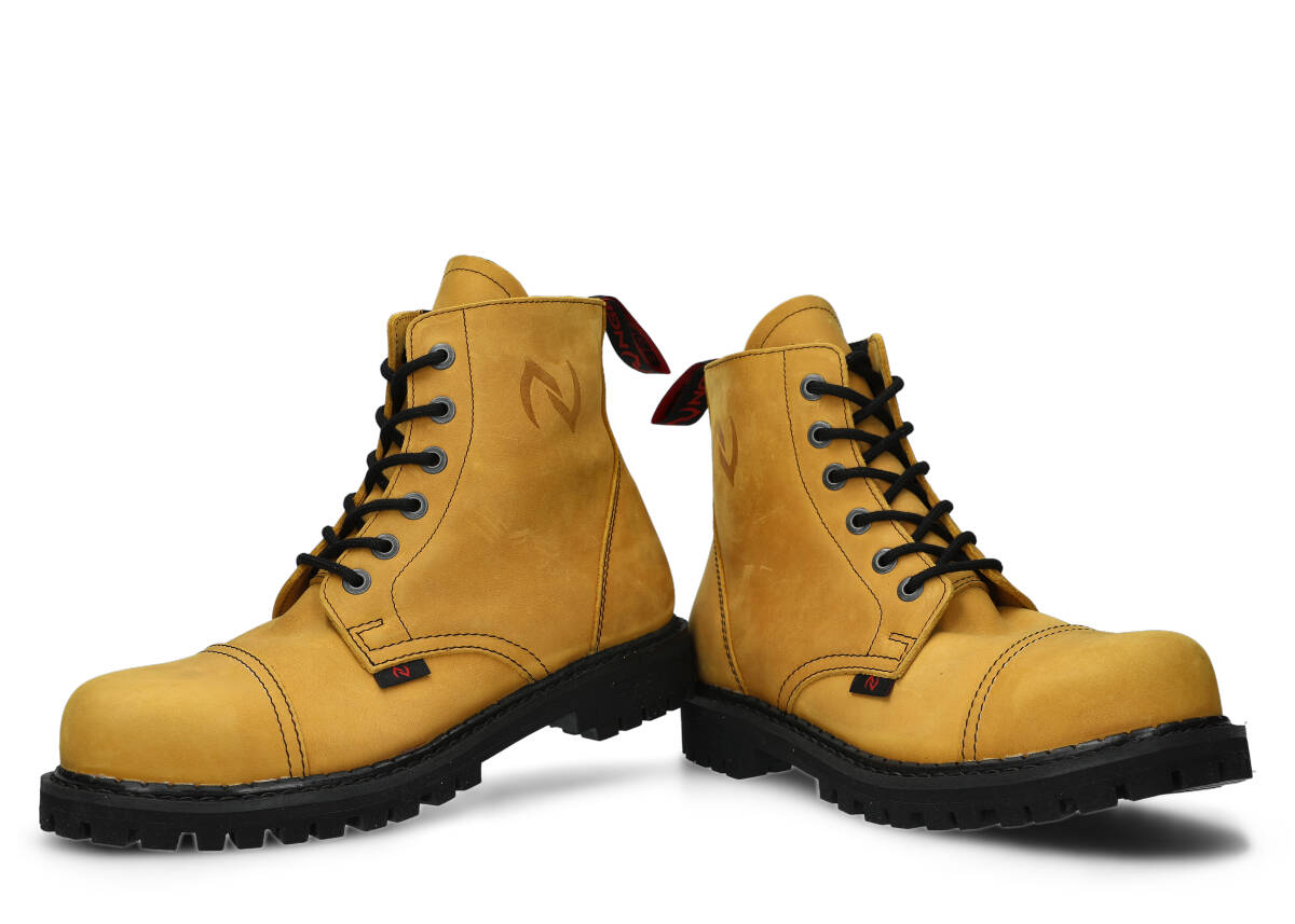 Stylowe, a do tego niezwykle trwałe – tak krótko możemy scharakteryzować proponowane w tej kategorii glany. Warte podkreślenia jest to, że obuwie jest w całości polskie – od projektu, przez komponenty potrzebne do jego produkcji. Wytrzymała skóra licowa typu crazy, z której te wysokie buty glany NAGABA 6H są wykonane, pochodzi prosto od rodzimych garbarni, a podeszwa wykonana jest z gumy polskiego producenta.