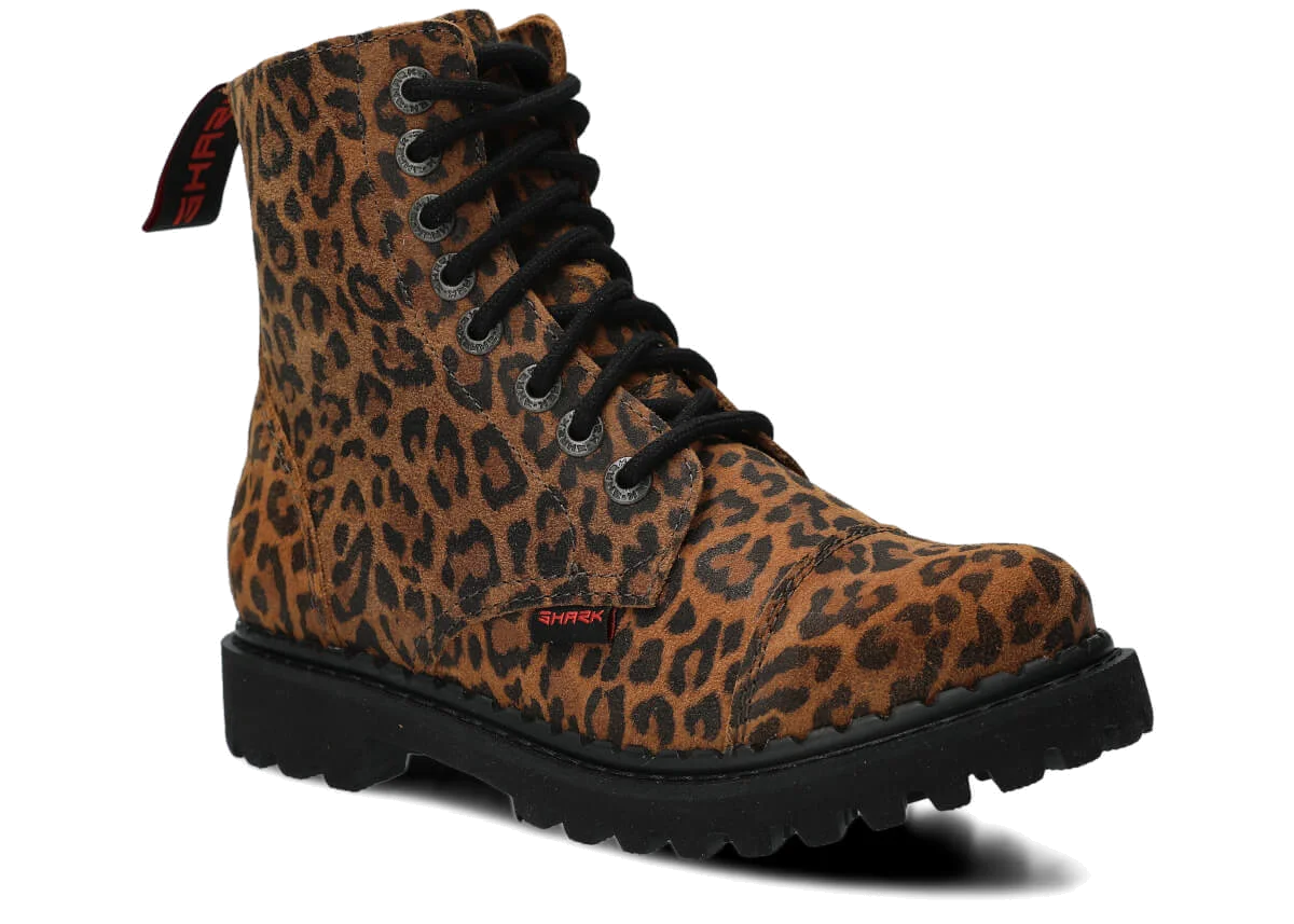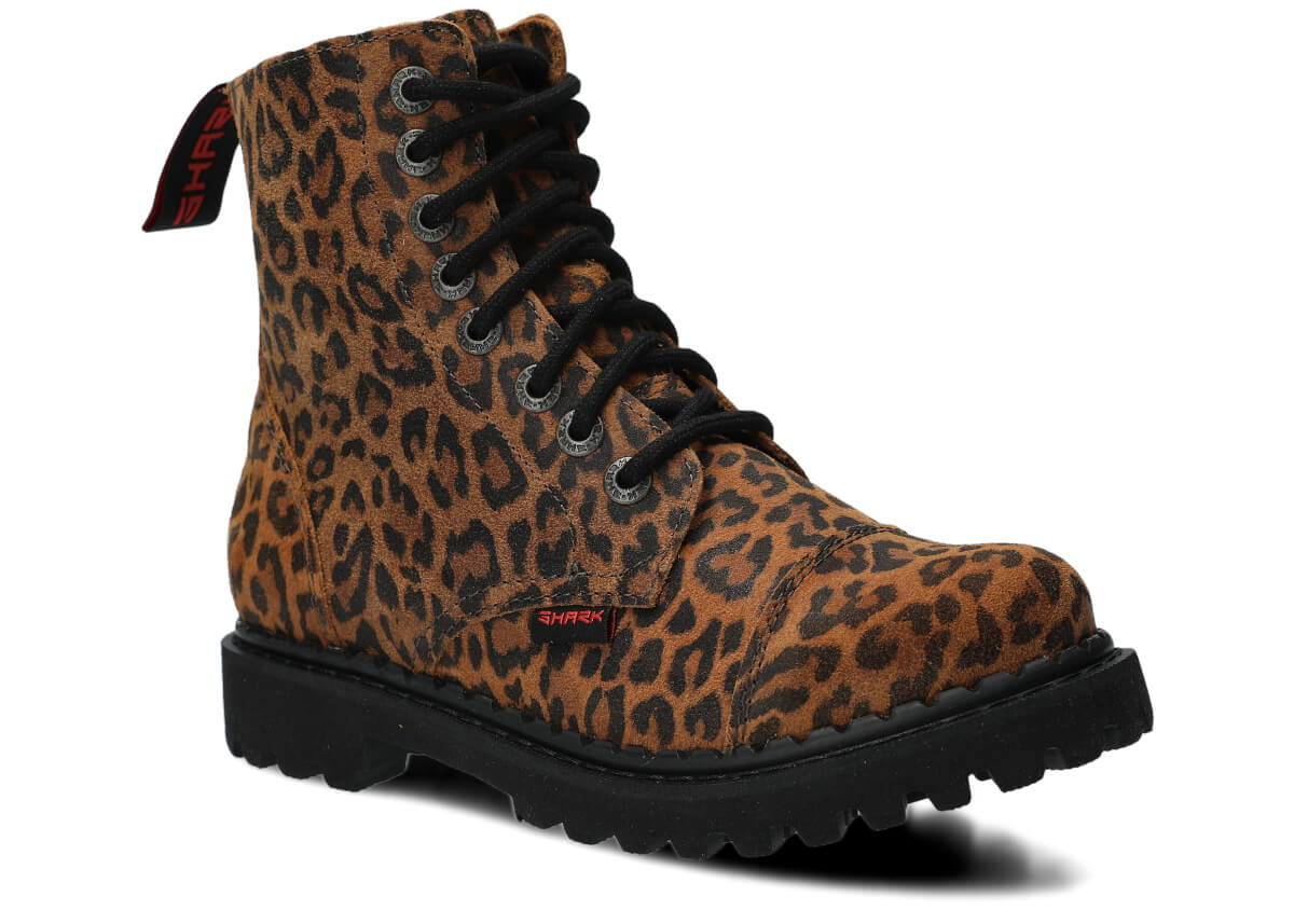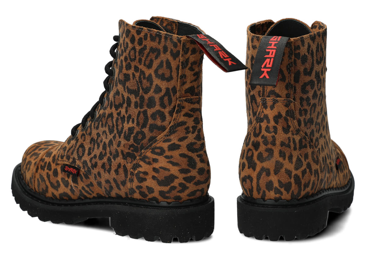 Ultra lekkie glany SHARK NAGABA 8H rudy lampart skórzane łączą w sobie to, co najlepsze w tradycyjnych glanach z nowoczesnymi technologiami, dzięki którym obuwie jest nie tylko stylowe, ale również komfortowe i bardzo lekkie.