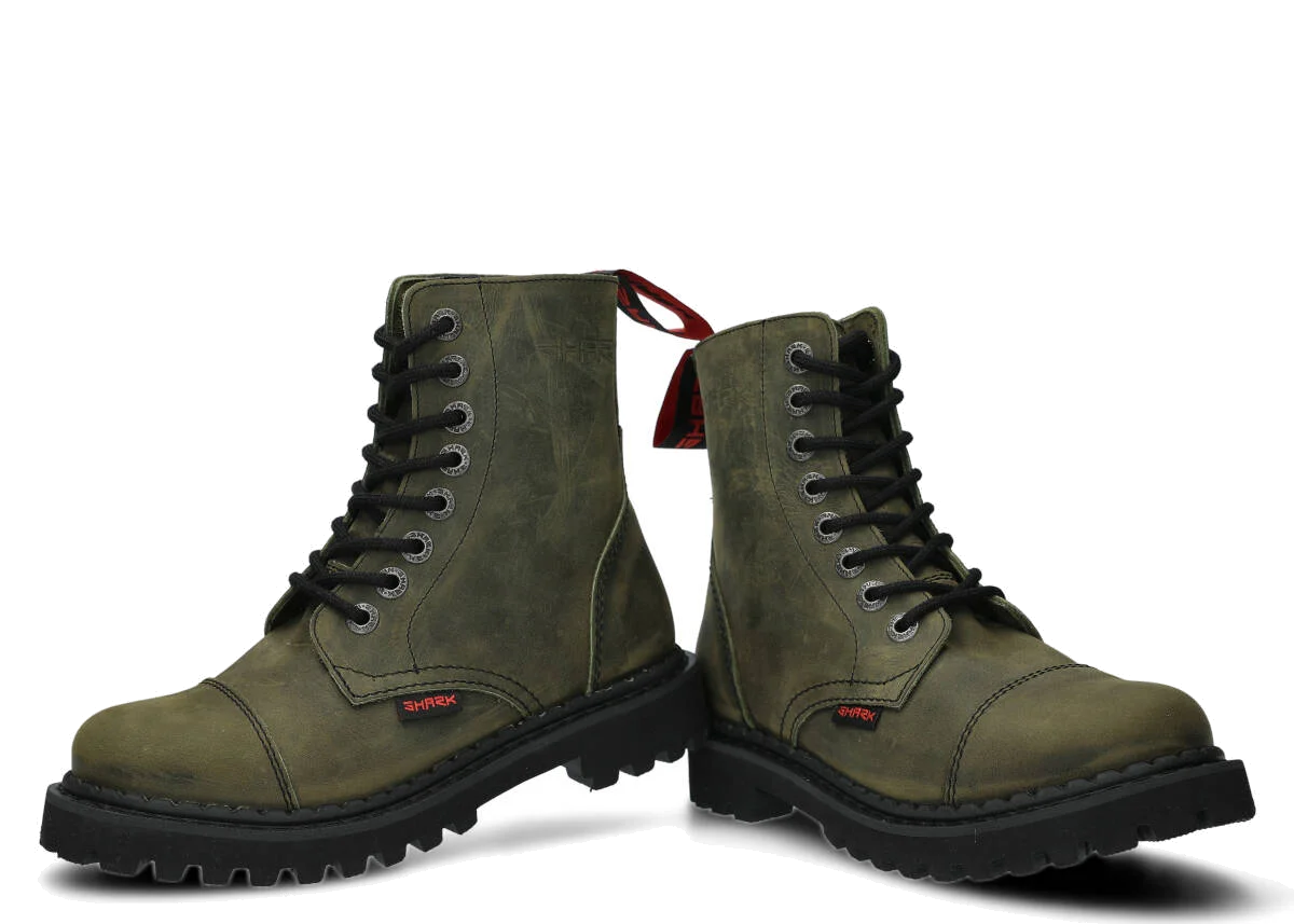 Ultra lekkie glany SHARK NAGABA 8H zgniła zieleń lico skórzane łączą w sobie to, co najlepsze w tradycyjnych glanach z nowoczesnymi technologiami, dzięki którym obuwie jest nie tylko stylowe, ale również komfortowe i bardzo lekkie.