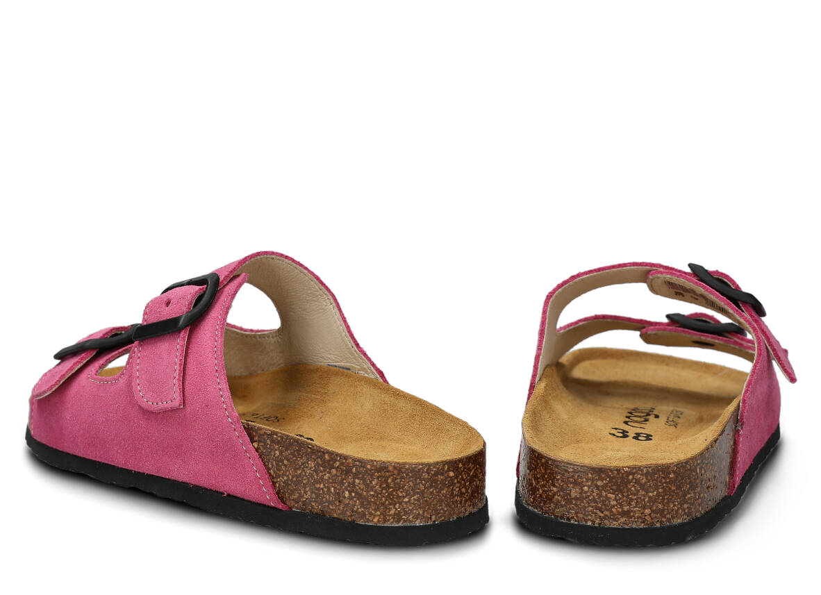 Klapki profilowane Nagaba model 0172 w kolorze różowym, które znajdzie całoroczne zastosowanie. Czy to w domu, czy to w pracy, gdziekolwiek się w nich wybierzesz poczujesz się w nich bardzo komfortowo nawet po wielu godzinach użytkowania. Za ten wyjątkowy stan odpowiada kilka czynników. Elastyczna i antypoślizgowa, odporna na ścieranie podeszwa. Najważniejsza w całej budowie buta jest wkładka korkowo-lateksowa o właściwościach amortyzujących idealnie podpierających stopę i ją odciążających. Wkładka wyłożona jest miłą w dotyku, delikatną skóry welurową. Zapewnia pochłanianie wilgoci i dobry klimat dla stóp. Wyprofilowane klapki Nagaba 0172 różowe welur to ochrona dla Twoich palców dzięki podniesionemu obrzeżu buta. Uwypuklenie pod palcami zapewnia ich zdrowe ułożenie. Wsparcie łuku stopy na całej jej długości zwiększa komfort użytkowania, a duże wgłębienie pod piętą zapewnia stabilność. Paski wykonane są z wysokiej jakości skóry naturalnej, a dzięki klamrom można idealnie dopasować obuwie do stóp. Wybierając klapki profilowane Nagaba 0172 różowe welur wspieracie swoje zdrowie.