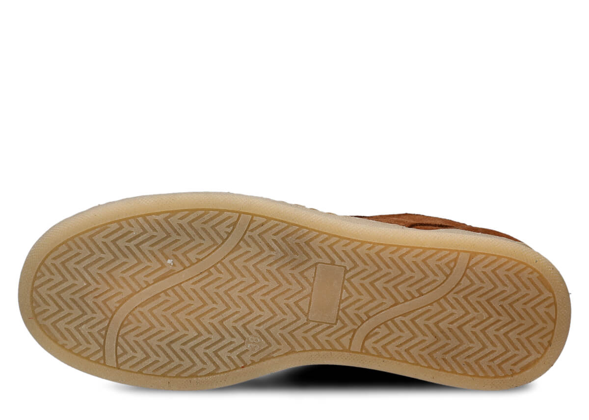 Cała konstrukcja oparta na skórze naturalnej: cholewka welurowa, wyściółka i wkładka z wieprzowej skóry – to gwarancja doskonałej wentylacji i higieny. Wilgoć jest efektywnie odprowadzana, stopy pozostają suche i świeże nawet po całym dniu aktywności. Podeszwa z TR-termokauczuku, klejona i szyta obwodowo, jest płaska, antypoślizgowa i stabilna – idealna na miejskie chodniki czy lekkie spacery.