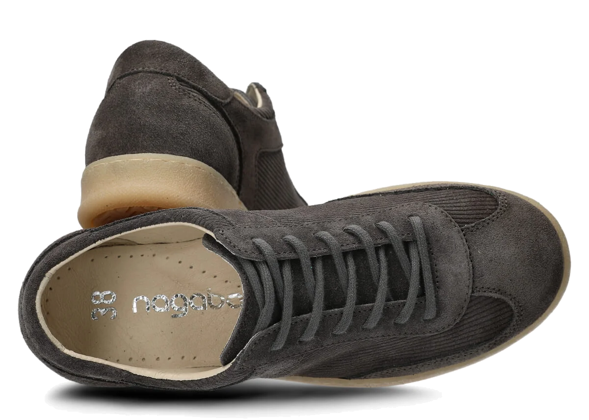 Półbuty damskie skórzane Nagaba 130 grafit welur to model, który przenosi klasykę mody w nowoczesny kontekst – idealny dla młodych kobiet i nastolatek szukających wygodnych butów z charakterem. Cholewka uszyta z połączenia naturalnej skóry welurowej w jednolitym graficie, wzbogacona skórą naturalną welurową z prążkowanym deseniem sztruksu, budzi skojarzenia z vintage trendami z lat 70. i 80., dodając stylizacjom unikalnego, kulturowego vibe'u. Ręcznie wykonane w Polsce z wyselekcjonowanych materiałów, te półbuty młodzieżowe łączą miękkość weluru z praktycznością na miejskie ulice.