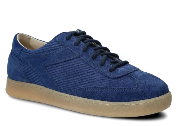 Półbuty damskie skórzane Nagaba 130 kobalt welur to model, który przenosi klasykę mody w nowoczesny kontekst – idealny dla młodych kobiet i nastolatek szukających wygodnych butów z charakterem. Cholewka uszyta z połączenia naturalnej skóry welurowej w jednolitym kobalcie, wzbogacona skórą naturalną welurową z prążkowanym deseniem sztruksu, budzi skojarzenia z vintage trendami z lat 70. i 80., dodając stylizacjom unikalnego, kulturowego vibe'u. Ręcznie wykonane w Polsce z wyselekcjonowanych materiałów, te półbuty młodzieżowe łączą miękkość weluru z praktycznością na miejskie ulice.