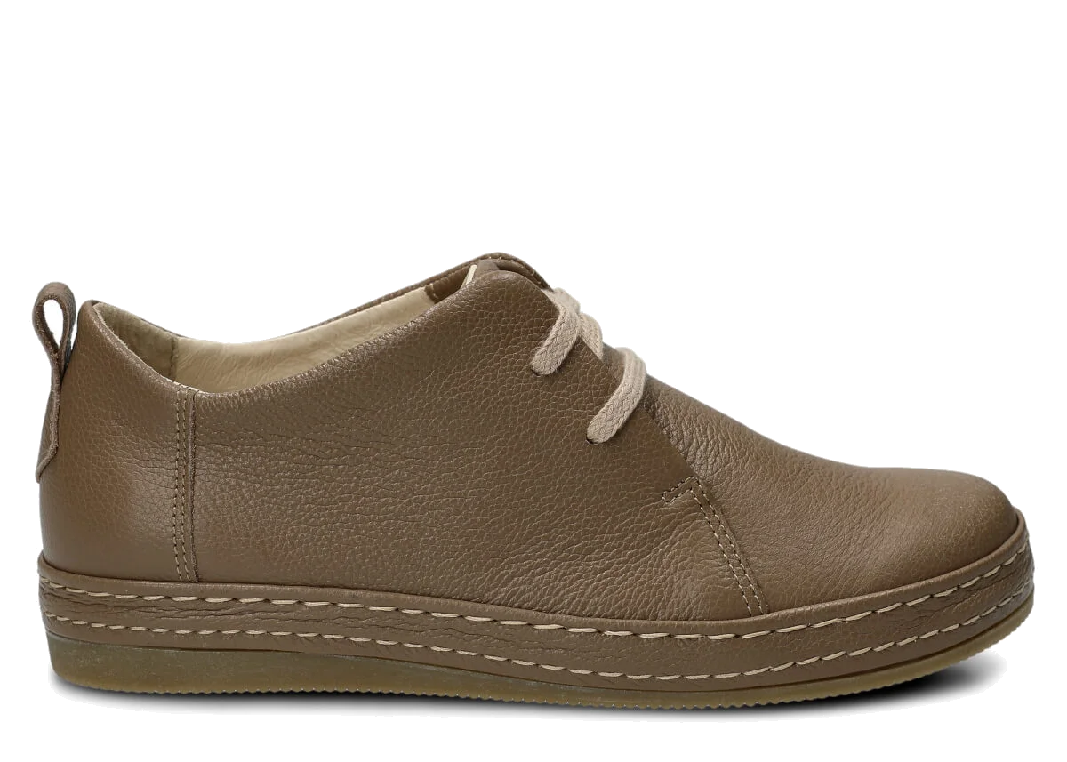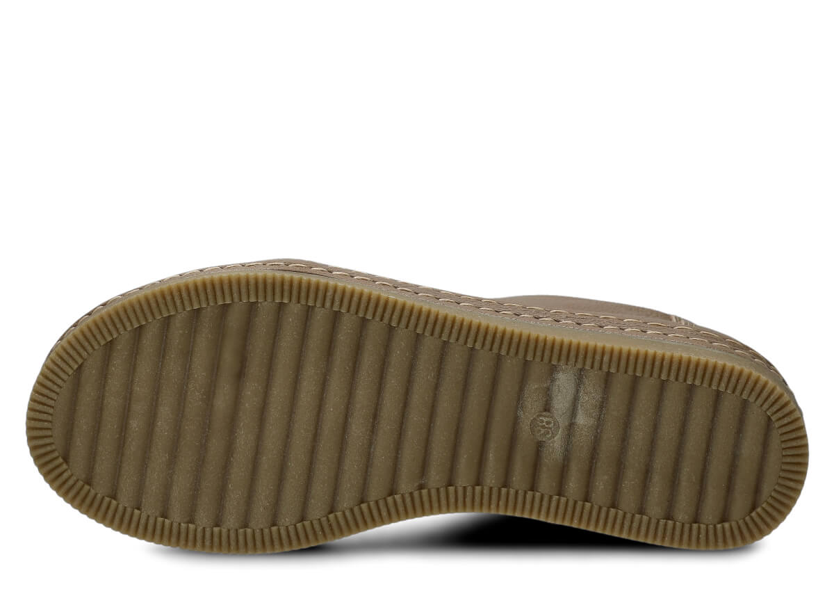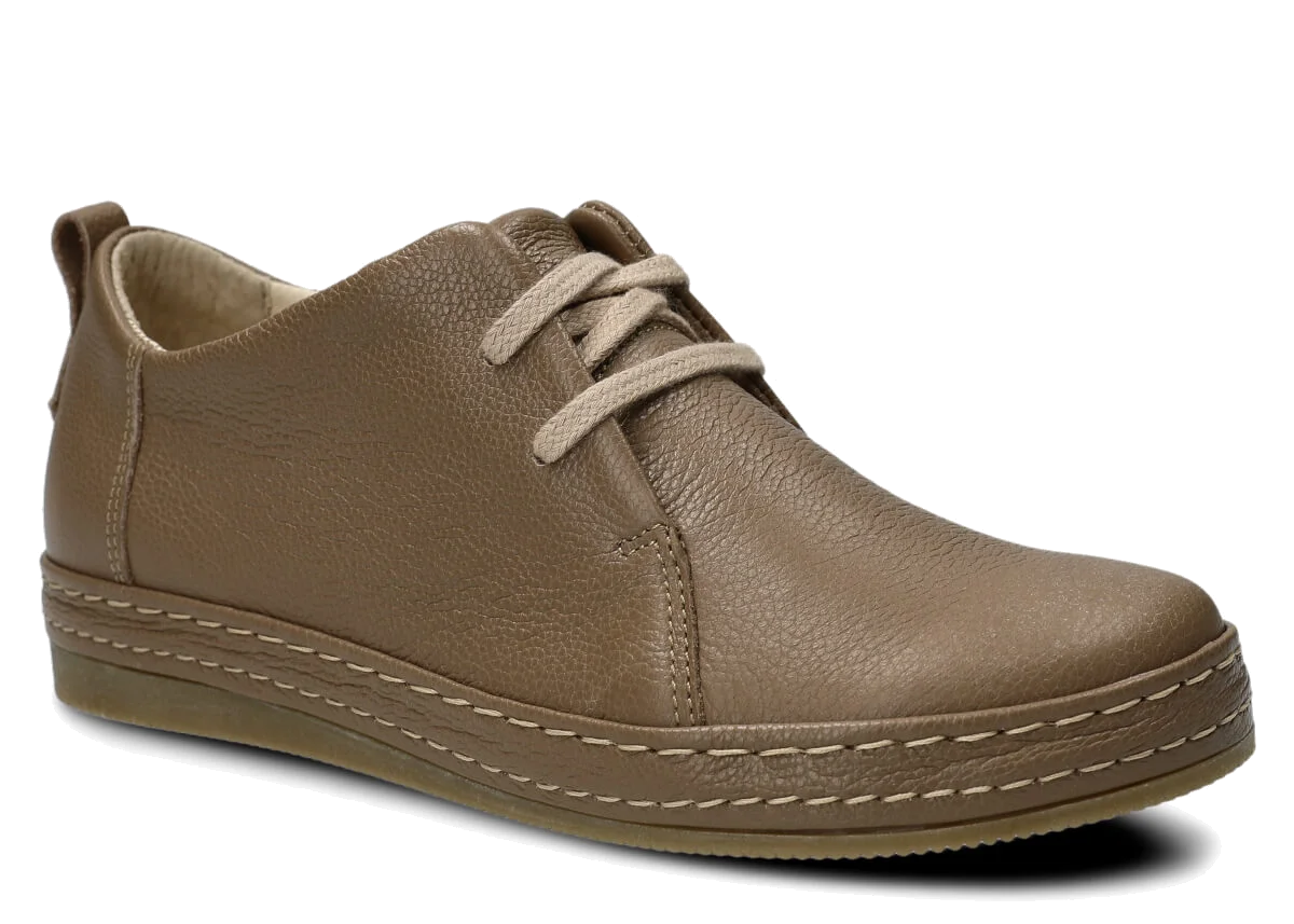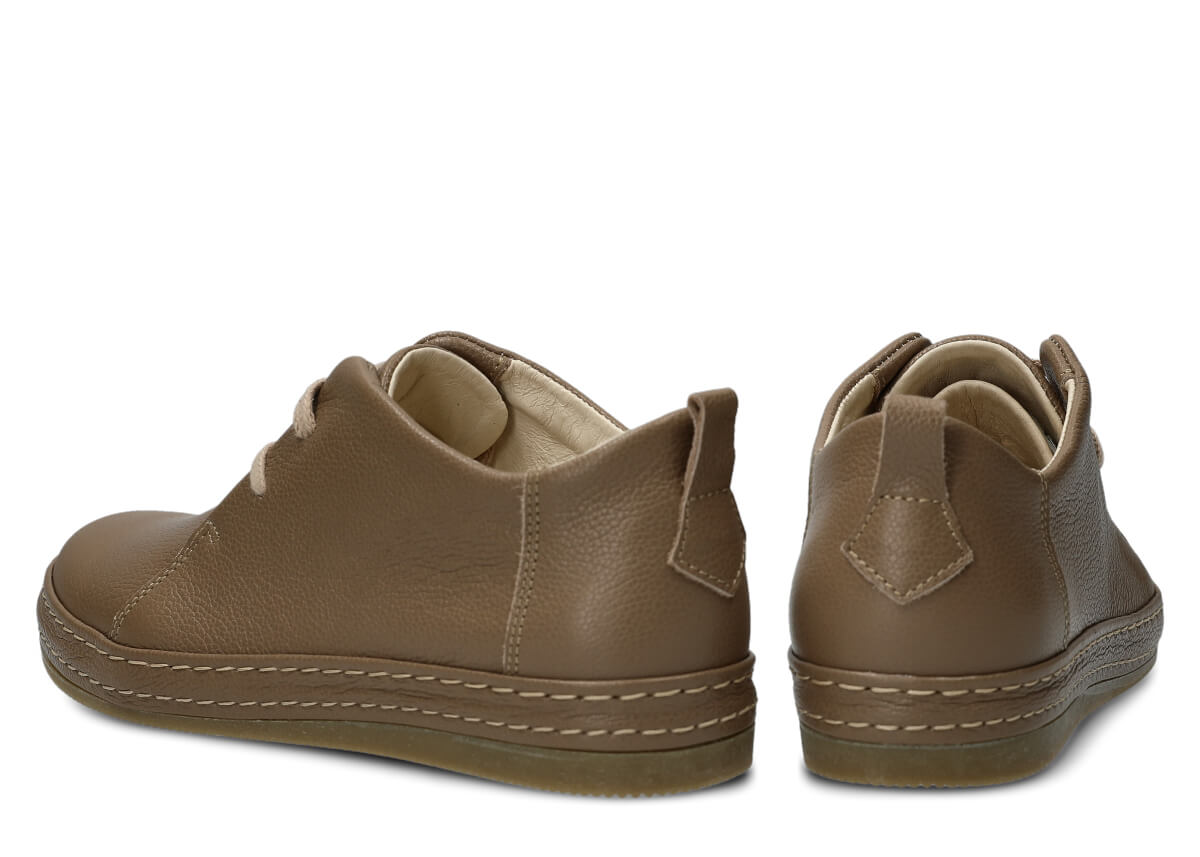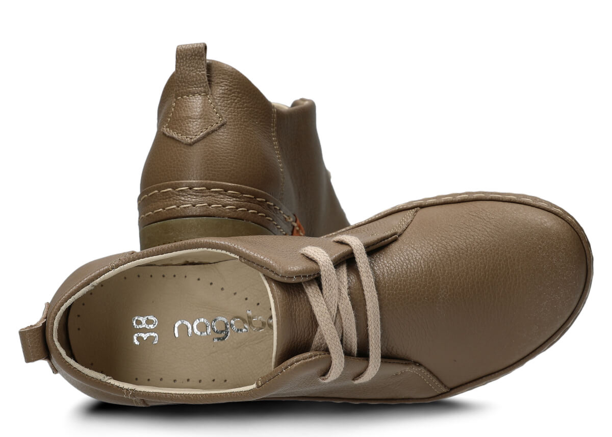 Wyprodukowane zostały z naturalnej skóry (zarówno wewnątrz, jak i z zewnątrz), która odpowiednio dopasuje się do stopy, zapewniając właściwą wygodę. Skóra pochodzenia naturalnego licowa typu Rustic, którą zastosowaliśmy podczas szycia prezentowanego obuwia, pochodzi od zaufanych firm, a za sprawą odpowiedniej i regularnej pielęgnacji zachowa swój pierwotny wygląd na długi czas. Półbut Nagaba 382 beż rustic skórzany został uszyty na cienkiej podeszwie, która odznacza się lekkością oraz elastycznością, tym samym zapewniać bardzo dużo wygody podczas użytkowania. Cechą charakterystyczną prezentowanego obuwia jest z pewnością pasek biegnący po otoku obuwia, wzbogacony w równoległe grube nici ozdobne.