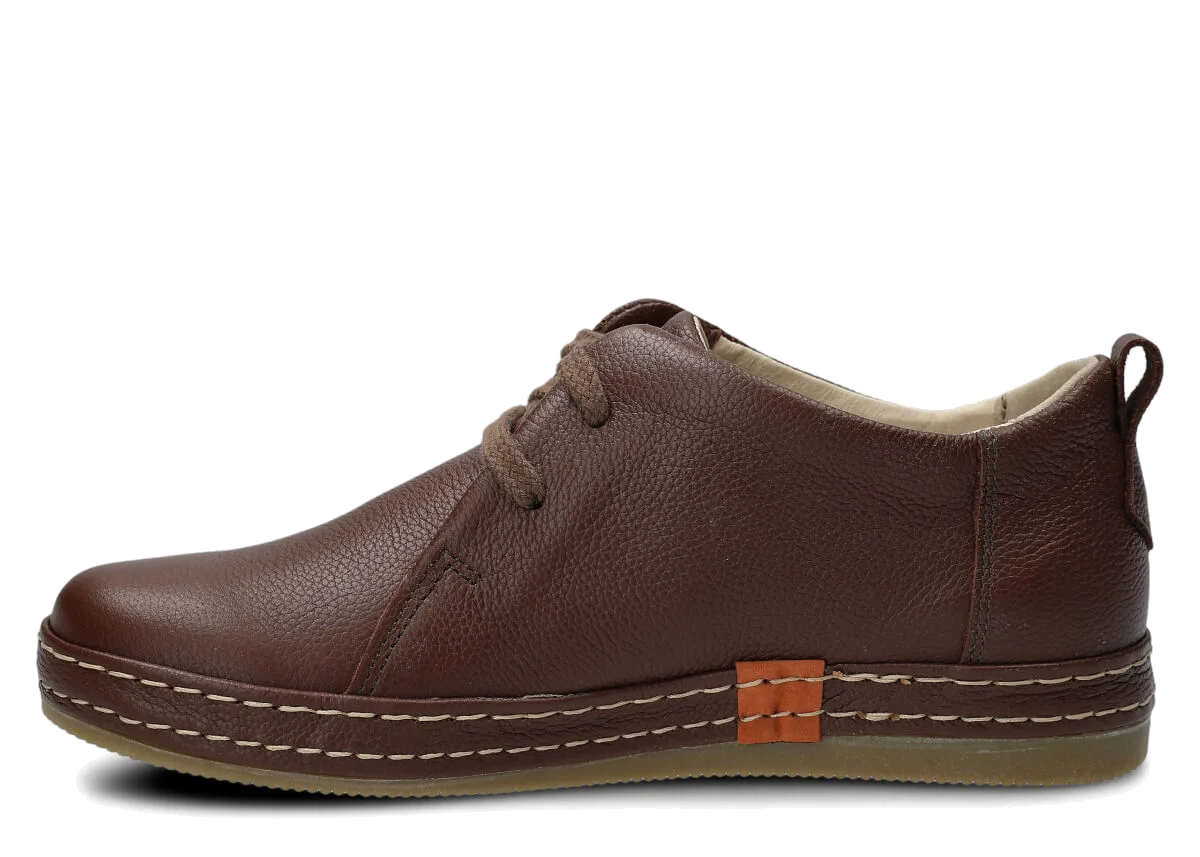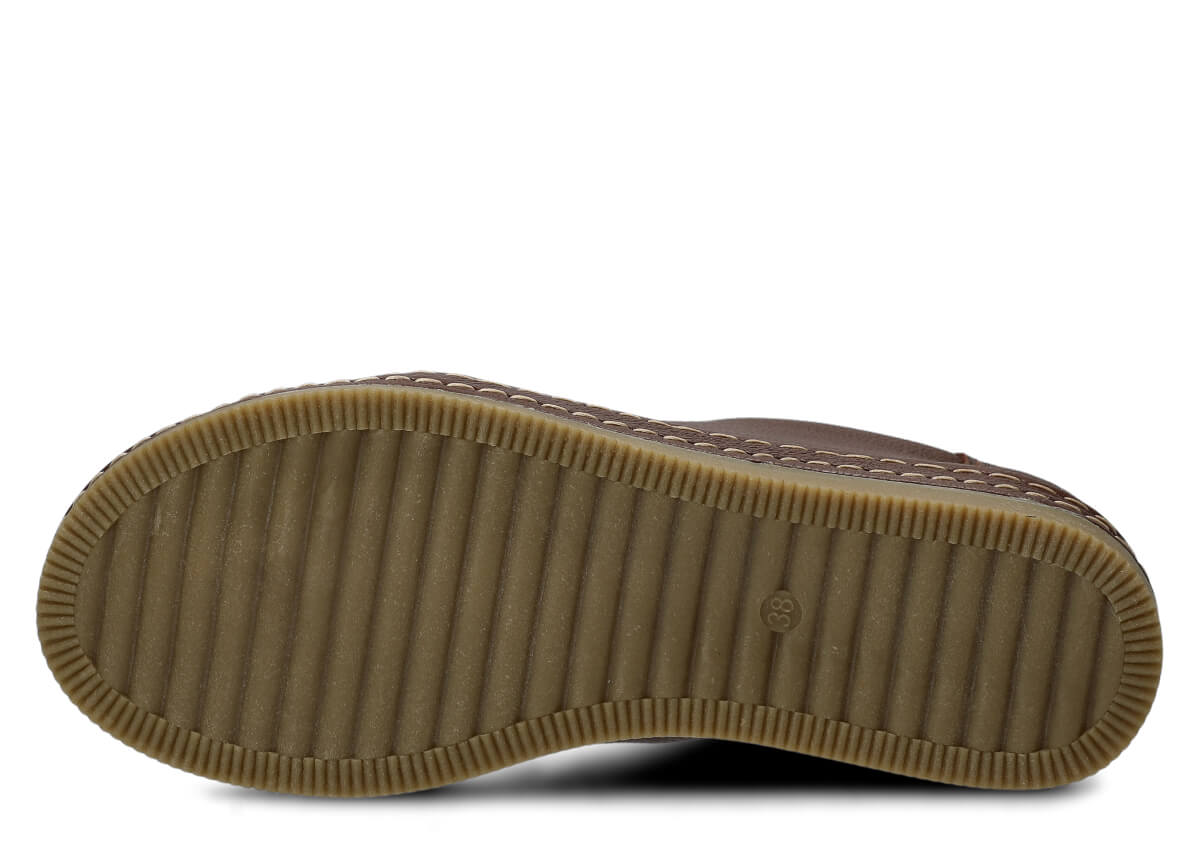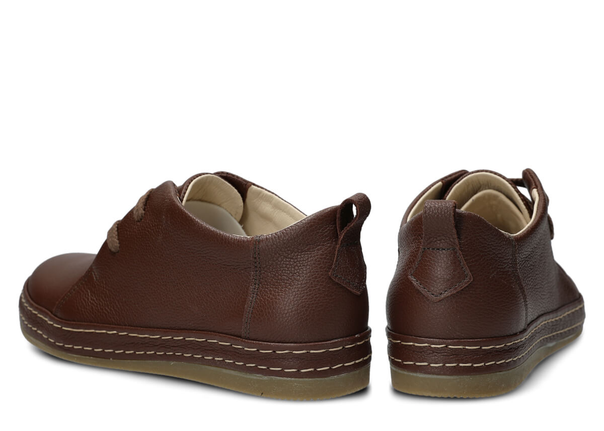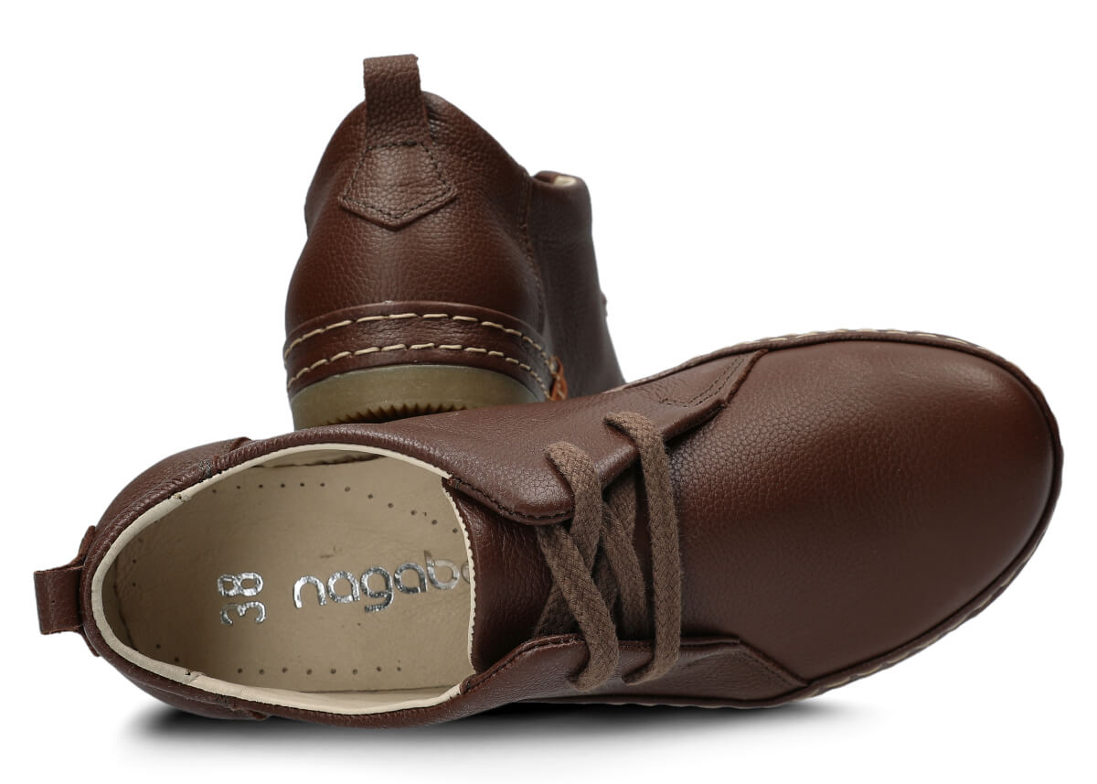 Wyprodukowane zostały z naturalnej skóry (zarówno wewnątrz, jak i z zewnątrz), która odpowiednio dopasuje się do stopy, zapewniając właściwą wygodę. Skóra pochodzenia naturalnego licowa typu Rustic, którą zastosowaliśmy podczas szycia prezentowanego obuwia, pochodzi od zaufanych firm, a za sprawą odpowiedniej i regularnej pielęgnacji zachowa swój pierwotny wygląd na długi czas. Półbut Nagaba 382 brąz rustic skórzany został uszyty na cienkiej podeszwie, która odznacza się lekkością oraz elastycznością, tym samym zapewniać bardzo dużo wygody podczas użytkowania. Cechą charakterystyczną prezentowanego obuwia jest z pewnością pasek biegnący po otoku obuwia, wzbogacony w równoległe grube nici ozdobne.