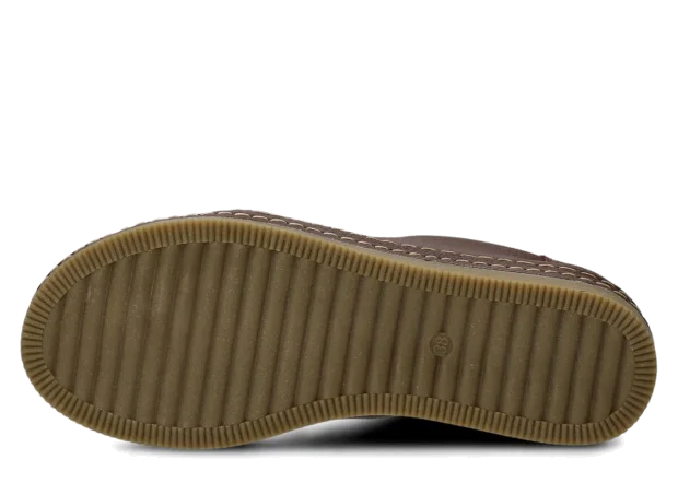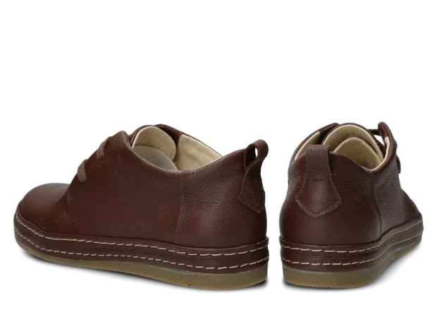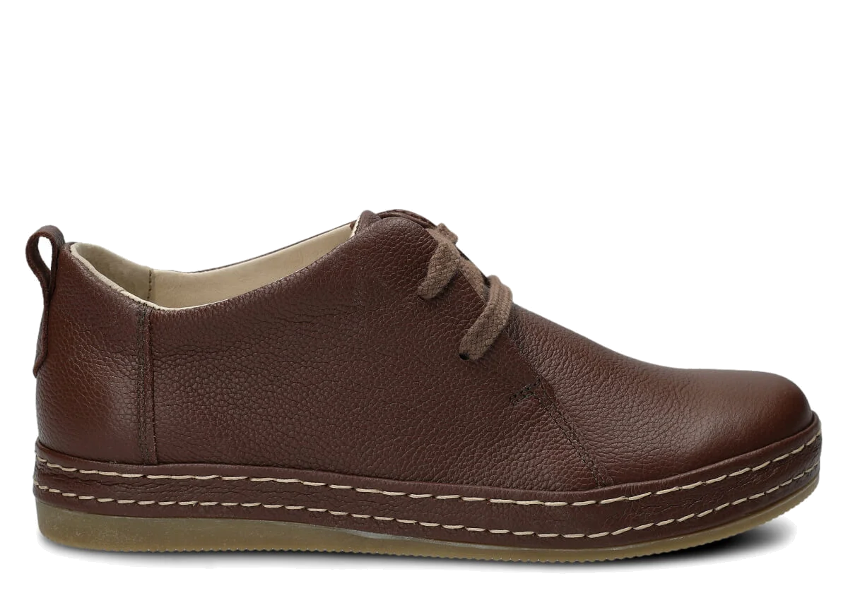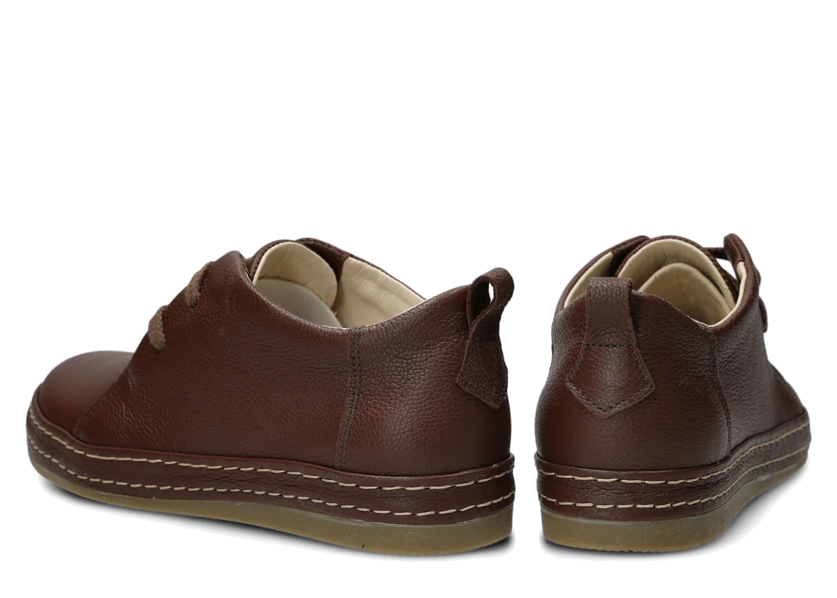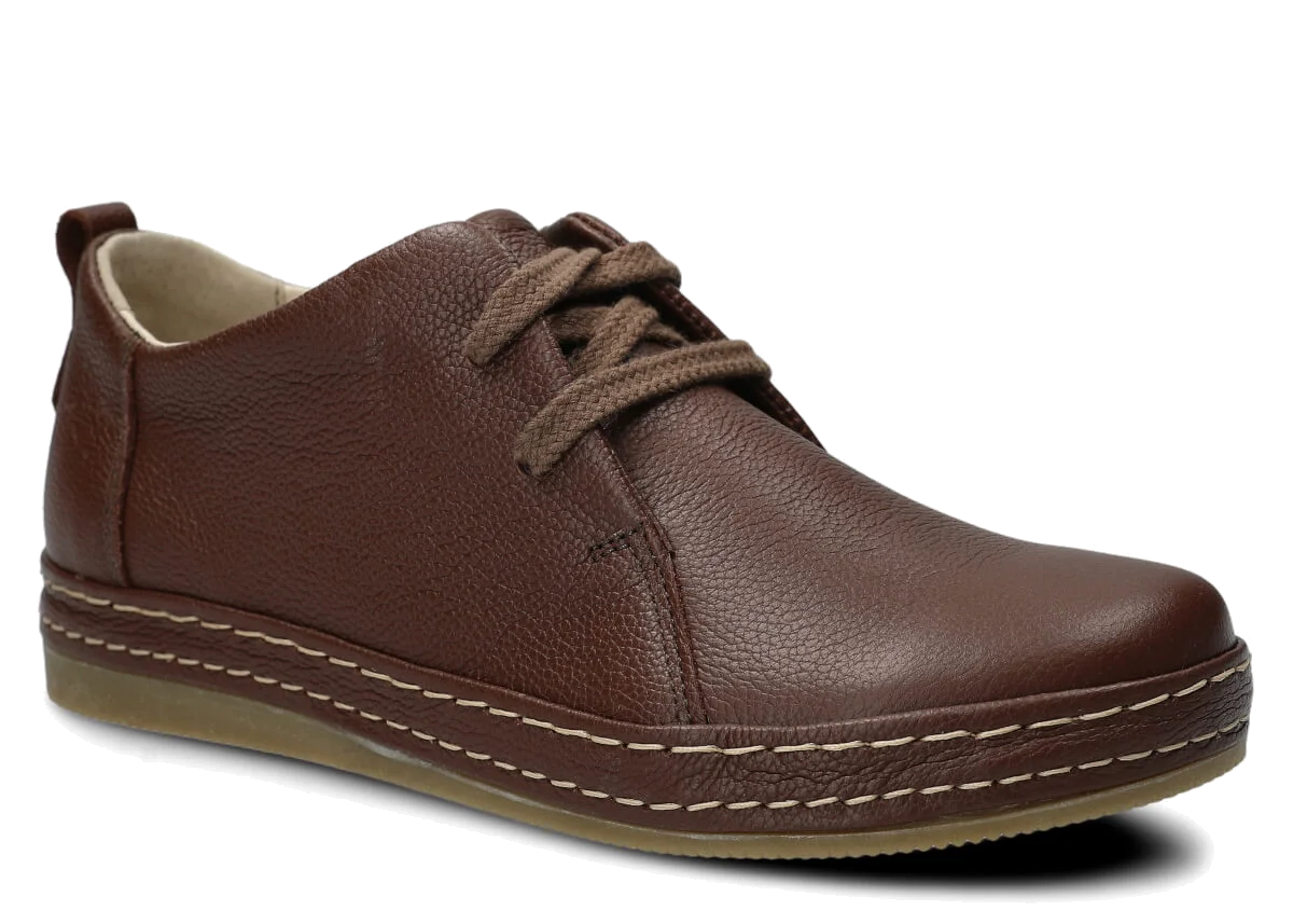 Wyprodukowane zostały z naturalnej skóry (zarówno wewnątrz, jak i z zewnątrz), która odpowiednio dopasuje się do stopy, zapewniając właściwą wygodę. Skóra pochodzenia naturalnego licowa typu Rustic, którą zastosowaliśmy podczas szycia prezentowanego obuwia, pochodzi od zaufanych firm, a za sprawą odpowiedniej i regularnej pielęgnacji zachowa swój pierwotny wygląd na długi czas. Półbut Nagaba 382 brąz rustic skórzany został uszyty na cienkiej podeszwie, która odznacza się lekkością oraz elastycznością, tym samym zapewniać bardzo dużo wygody podczas użytkowania. Cechą charakterystyczną prezentowanego obuwia jest z pewnością pasek biegnący po otoku obuwia, wzbogacony w równoległe grube nici ozdobne.