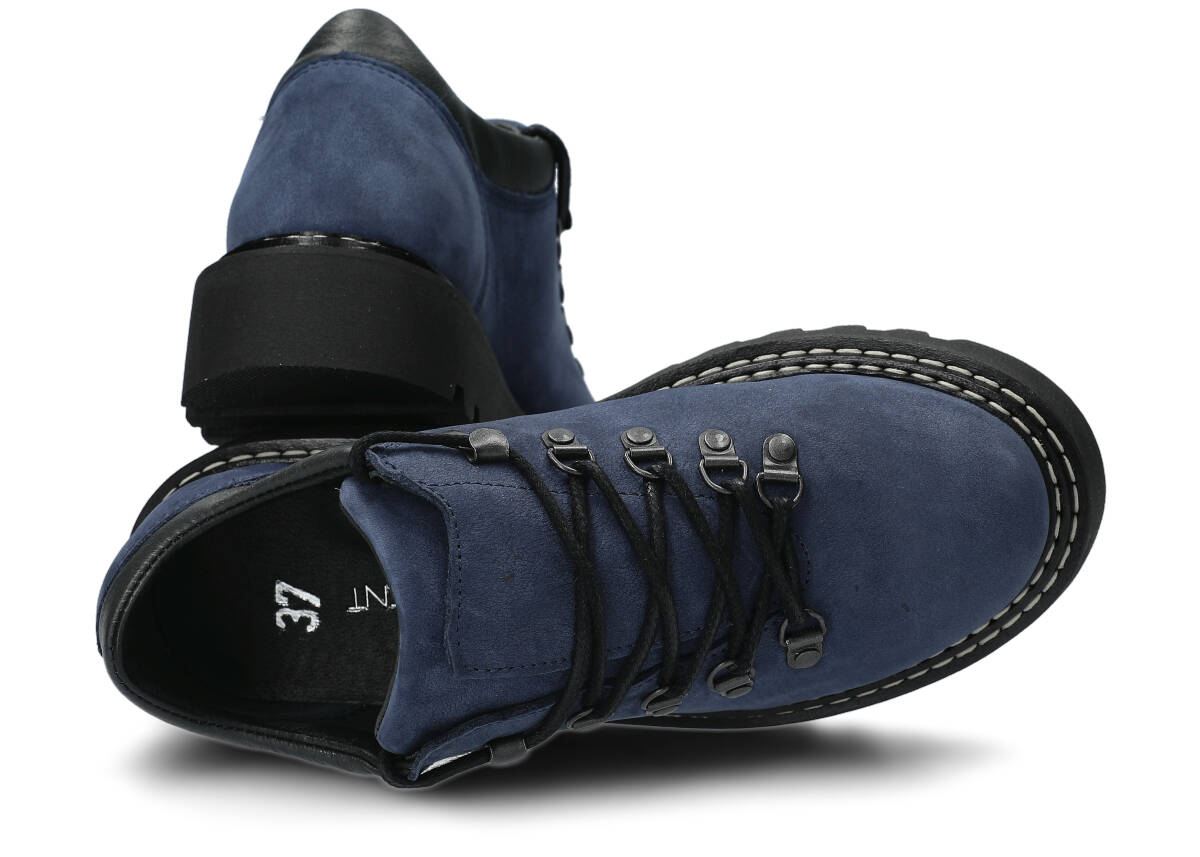 WAX - skóra naturalna zamszowa z długim włoskiem. Bardzo plastyczna i miękka. Wytwarzana w małej włoskiej manufakturze. Dzięki zastosowaniu specjalnie nakładanego ręcznie wosku, skóra ma charakterystyczny "postarzały" wygląd (efekt vintage). Skóra ma niejednolity kolor, cieniowania ( drobne rysy, odciski nie stanowią wady materiału). W trakcie użytkowania buty wykonane z weluru WAX mogą zmieniać odcień koloru podstawowego, porzecierać się na jaśniejszy. Nie zalecamy szczotkować obuwia.