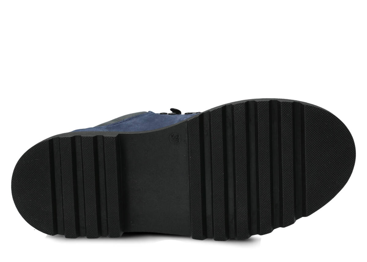 Blue - skóra licowa, o delikatnym matowym wykończeniu. Miękka, mięsista, bardzo plastyczna. Jednocześnie bardzo wytrzymała. Doskonale nadaje się do obuwia typu botek, kozak. Buty wykonane z tej skóry mają elegancki wygląd.