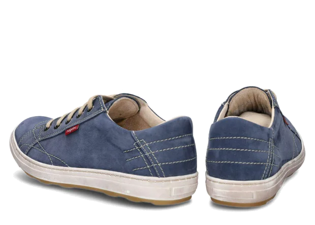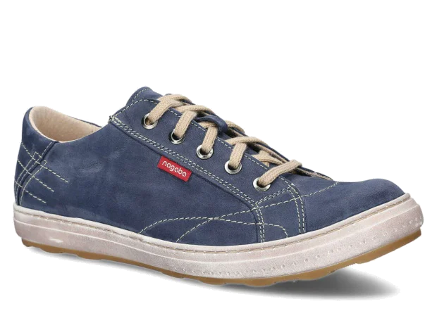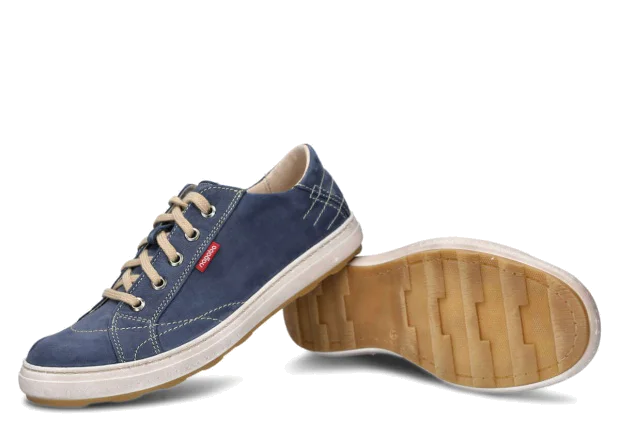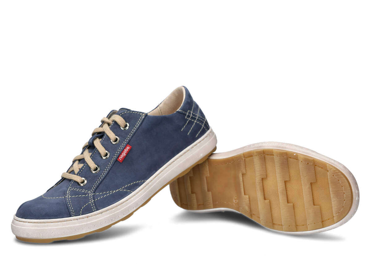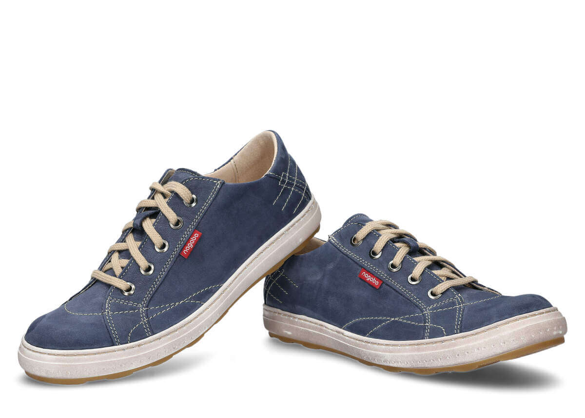 które zostało wykonane w kolorze granatowym. W całości buty te zostały stworzone ze skóry, a ich lekkość sprawdzi się przede wszystkim podczas wybierania luźnych, nieformalnych stylizacji.