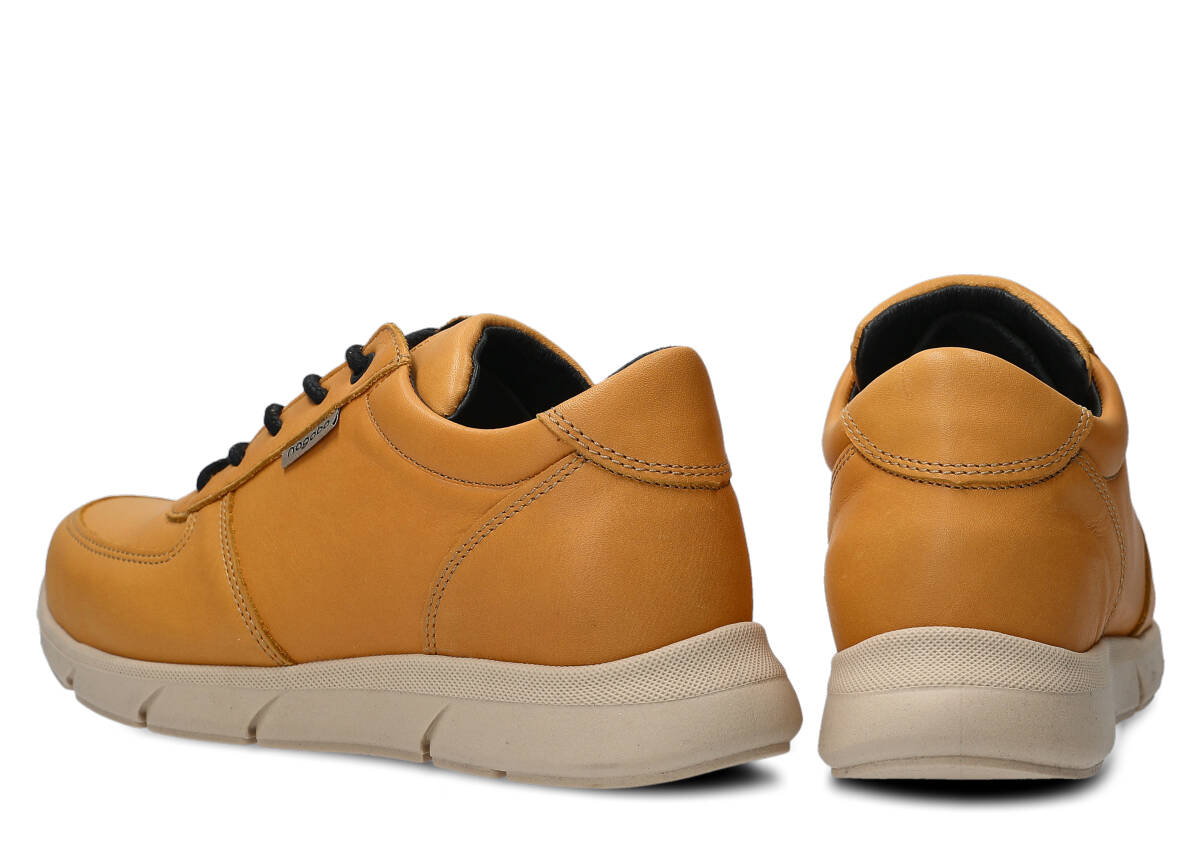 W celu podwyższenia komfortu półbut Nagaba 126 żółty skórzany posiada podeszwę wykonaną ze styrogumu, zwanej również gumami porowatymi. To właśnie za jej sprawą obuwie charakteryzuje się doskonałą przyczepnością do podłoża, tym samym minimalizuje ryzyko poślizgnięcia się, a także jest wyjątkowo lekkie w porównaniu do aktualnie modnych sneakersów. Natomiast dzięki obecności sznurowadeł z łatwością dopasujesz obuwie do kształtu swojej stopy i zadbasz o jej komfort.