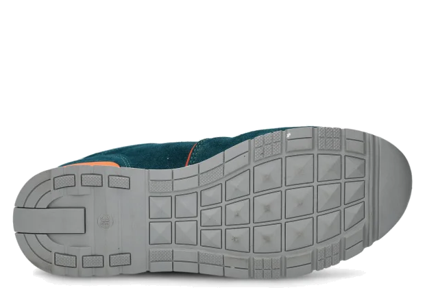 Obuwie pomimo klasycznej konstrukcji pomoże Ci na wykończenie stylizacji w sposób oryginalny. Półbut Nagaba 313 turkus odznacza się przede wszystkim niską cholewką wykonaną z wysokiej jakości skóry naturalnej typu welur, pochodzącej od zaufanych firm, która po poddaniu regularnej impregnacji charakteryzuje się wysoką trwałością. Dodatkowo cholewkę wzbogaciliśmy poprzez zastosowanie niewielkich elementów, takich jak subtelne przeszycia w tym samym kolorze co obuwie, srebrne i pomarańczowe elementy oraz niewielkie logo.
