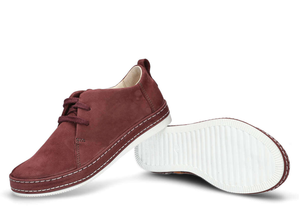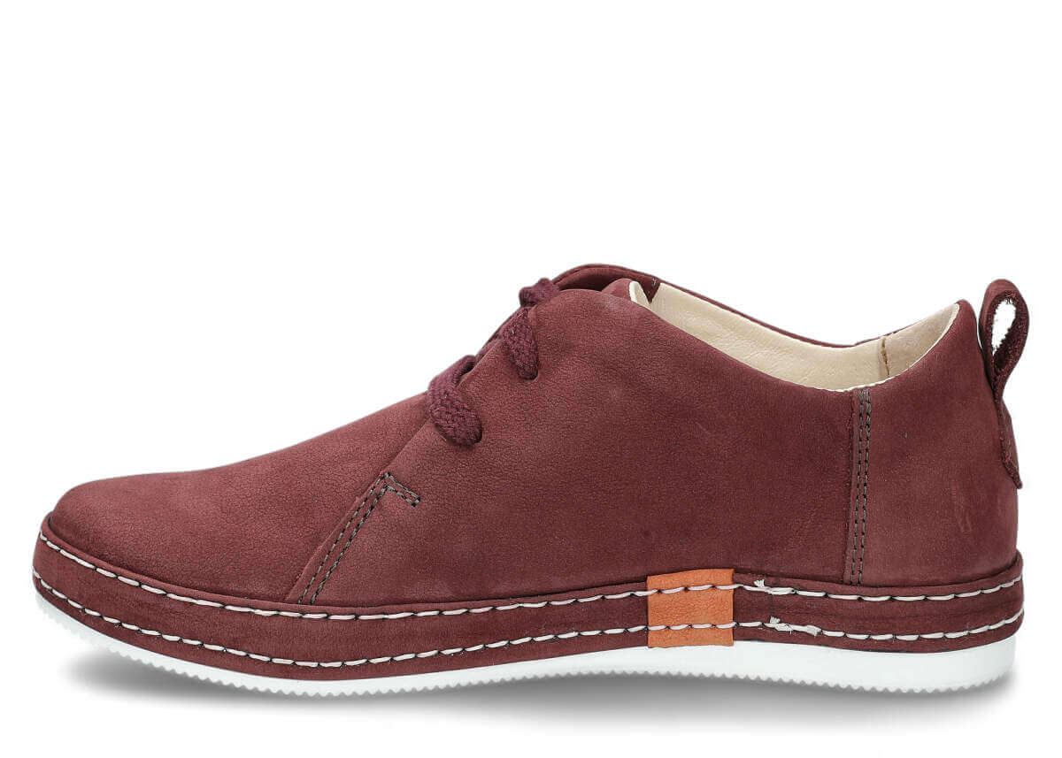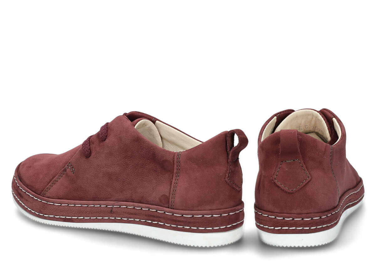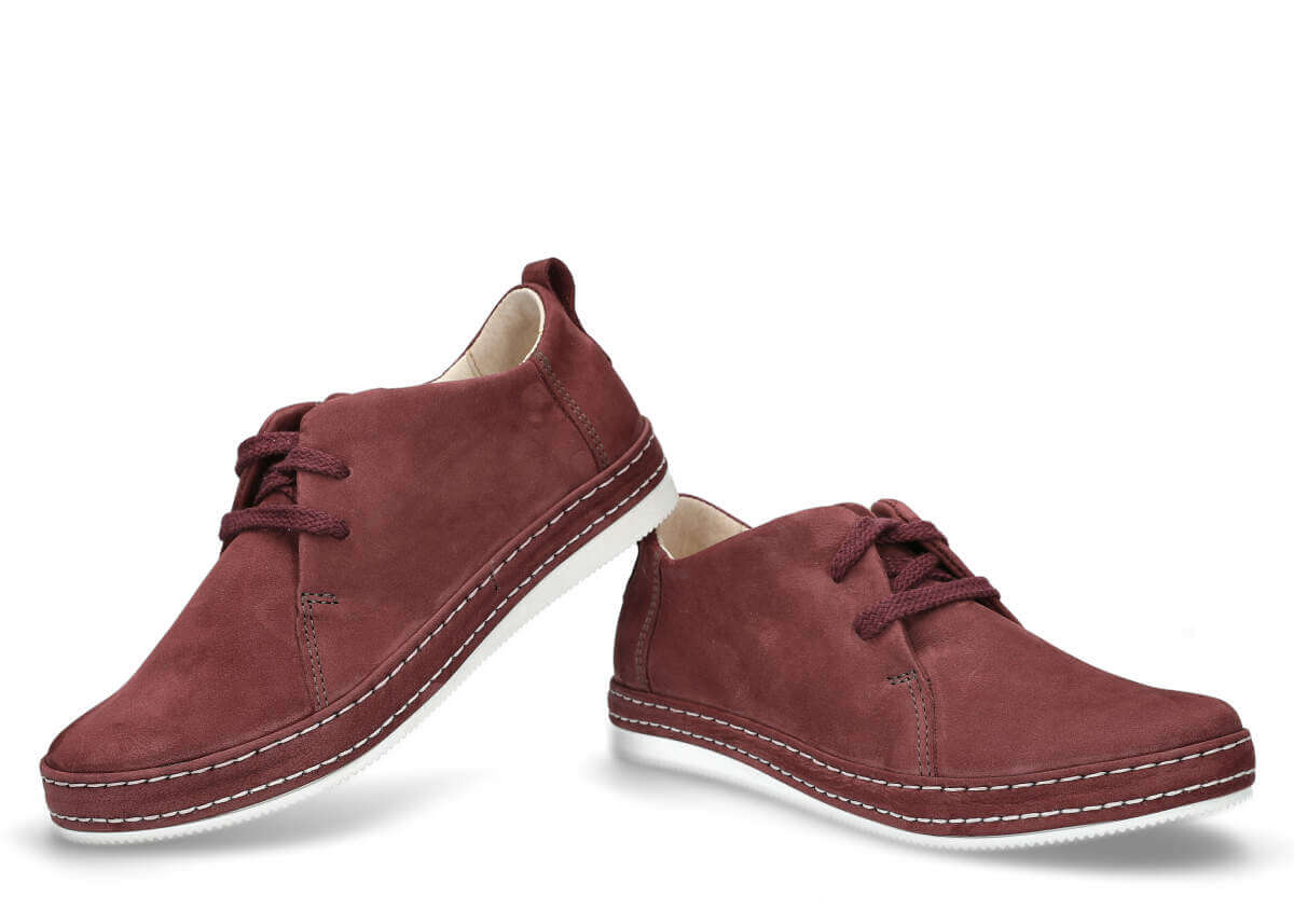 Wyprodukowane zostały z naturalnej skóry (zarówno wewnątrz, jak i z zewnątrz), która odpowiednio dopasuje się do stopy, zapewniając właściwą wygodę. Skóra pochodzenia naturalnego nubuk typu Samuel, którą zastosowaliśmy podczas szycia prezentowanego obuwia, pochodzi od zaufanych firm, a za sprawą odpowiedniej i regularnej pielęgnacji zachowa swój pierwotny wygląd na długi czas. Półbut Nagaba 382 bordo samuel skórzany został uszyty na cienkiej podeszwie, która odznacza się lekkością oraz elastycznością, tym samym zapewniać bardzo dużo wygody podczas użytkowania. Cechą charakterystyczną prezentowanego obuwia jest z pewnością pasek biegnący po otoku obuwia, wzbogacony w równoległe grube nici ozdobne.