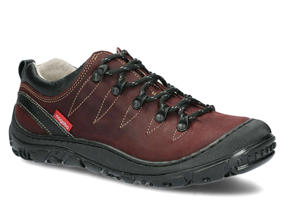 Cholewka w bordowych butach NAGABA 241 została wykonana z naturalnej skóry typu crazy, a wewnątrz - zastosowany materiał podszewkowy również ze skóry naturalnej. Gwarantuje to nie tylko odpowiednią trwałość, ale również ułatwia to „oddychanie” stopy, czyli odprowadzanie zbierającej się wilgoci. Z tego też względu półbut trekkingowy NAGABA 241 bordo crazy skórzany spełni swoje zadanie podczas rekreacyjnych spacerów, a także wymagających wędrówek po górskich szlakach, zarazem ciekawie się prezentując z pozostałą częścią sportowej stylizacji.