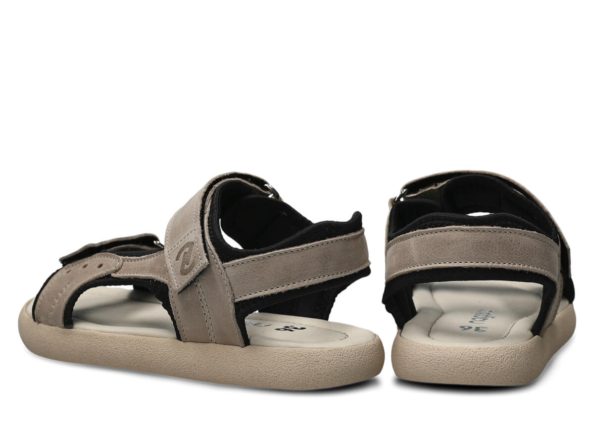 Oprócz tego prezentowane przez nas beżowe sandały charakteryzują się niezwykłą lekkością, łatwym zakładaniem, a także ciekawym designem. Dzięki obecności dwóch zapięć na rzepy z łatwością można dopasować obuwie do wielkości oraz kształtu stopy.