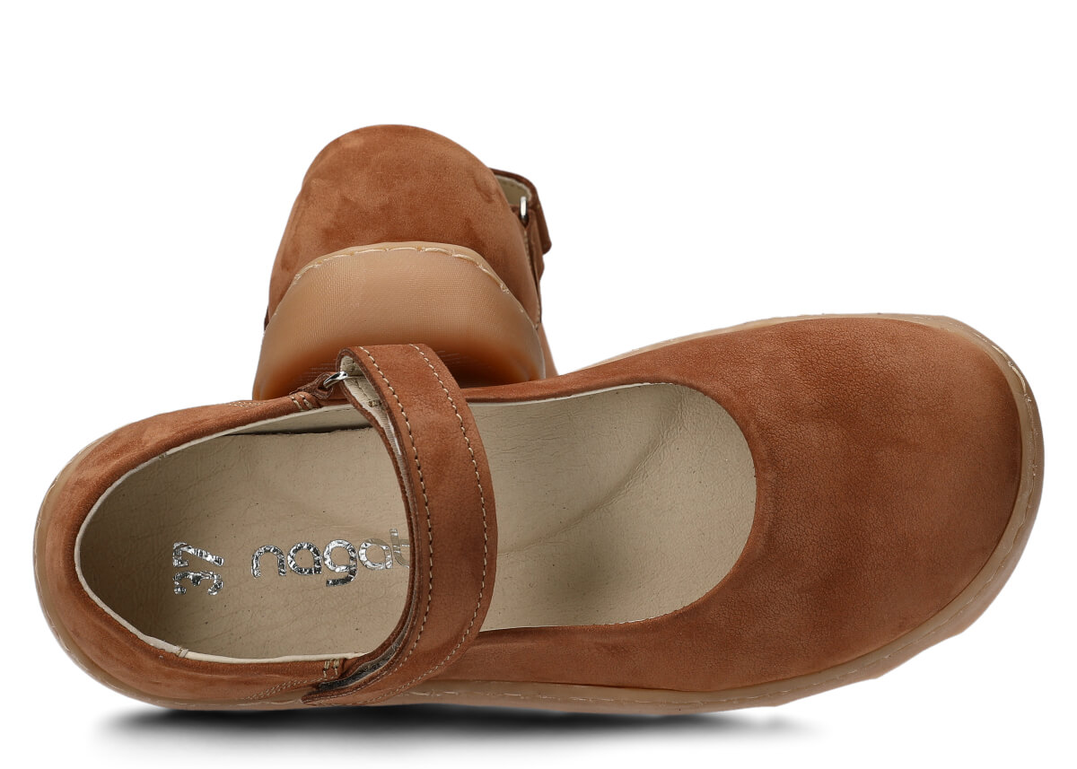 Szeroki półbut damski, balerinka NAGABA 632 brąz samuel skórzany