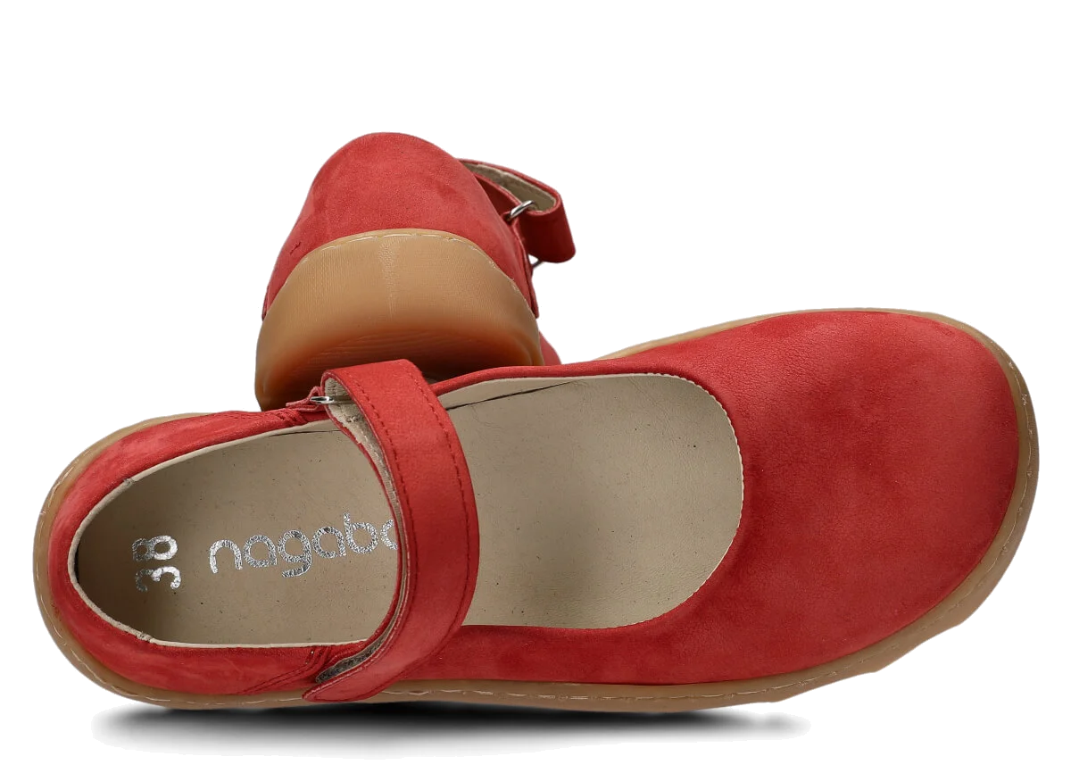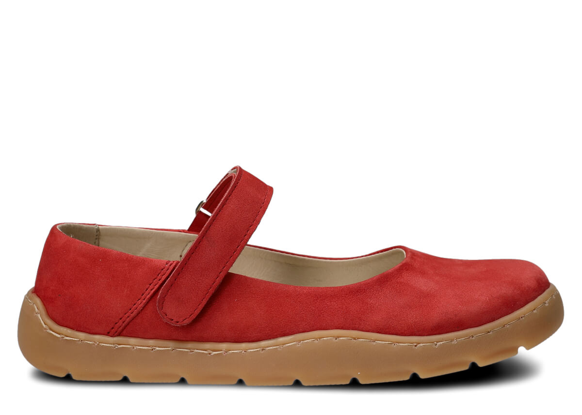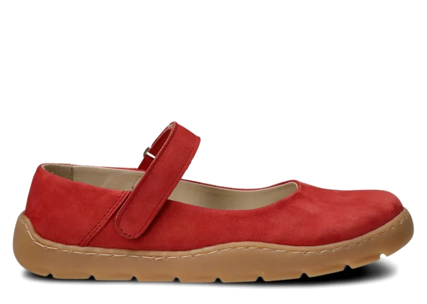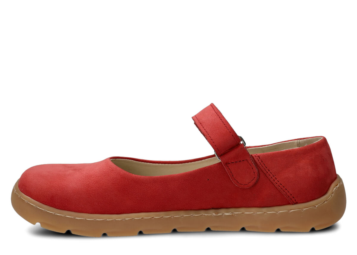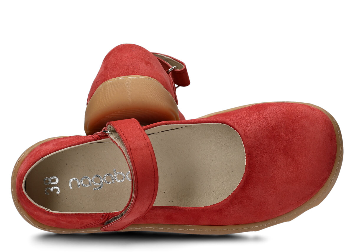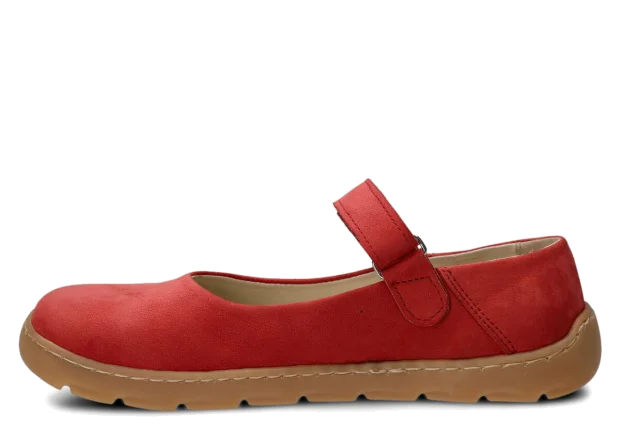 Szeroki półbut damski, balerinka NAGABA 632 czerwony samuel skórzany