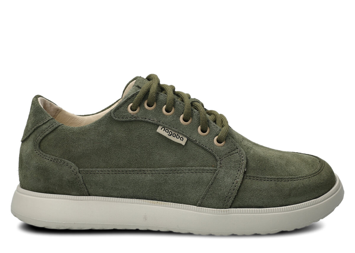 Szeroki półbut damski NAGABA 626 khaki welur skórzany