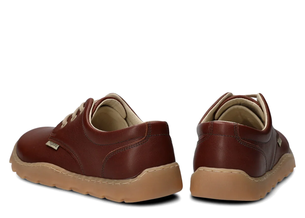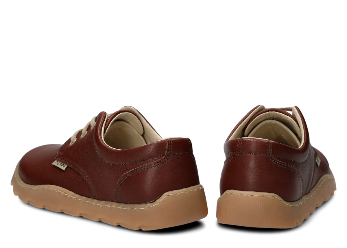 Podsumowując, półbut damski Nagaba model 630 skórzany w kolorze rudym to połączenie zdrowotnego podejścia barefoot z nowoczesnym, minimalistycznym stylem, zapewniający wygodę, stabilność i elegancję w jednym. To obuwie idealne na różne okazje, dla szerokich stóp – zarówno na co dzień, jak i do bardziej casualowych stylizacji.
