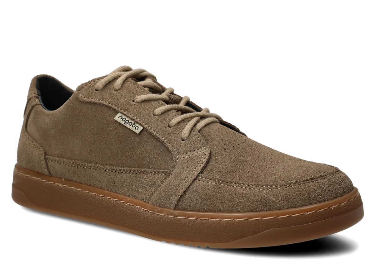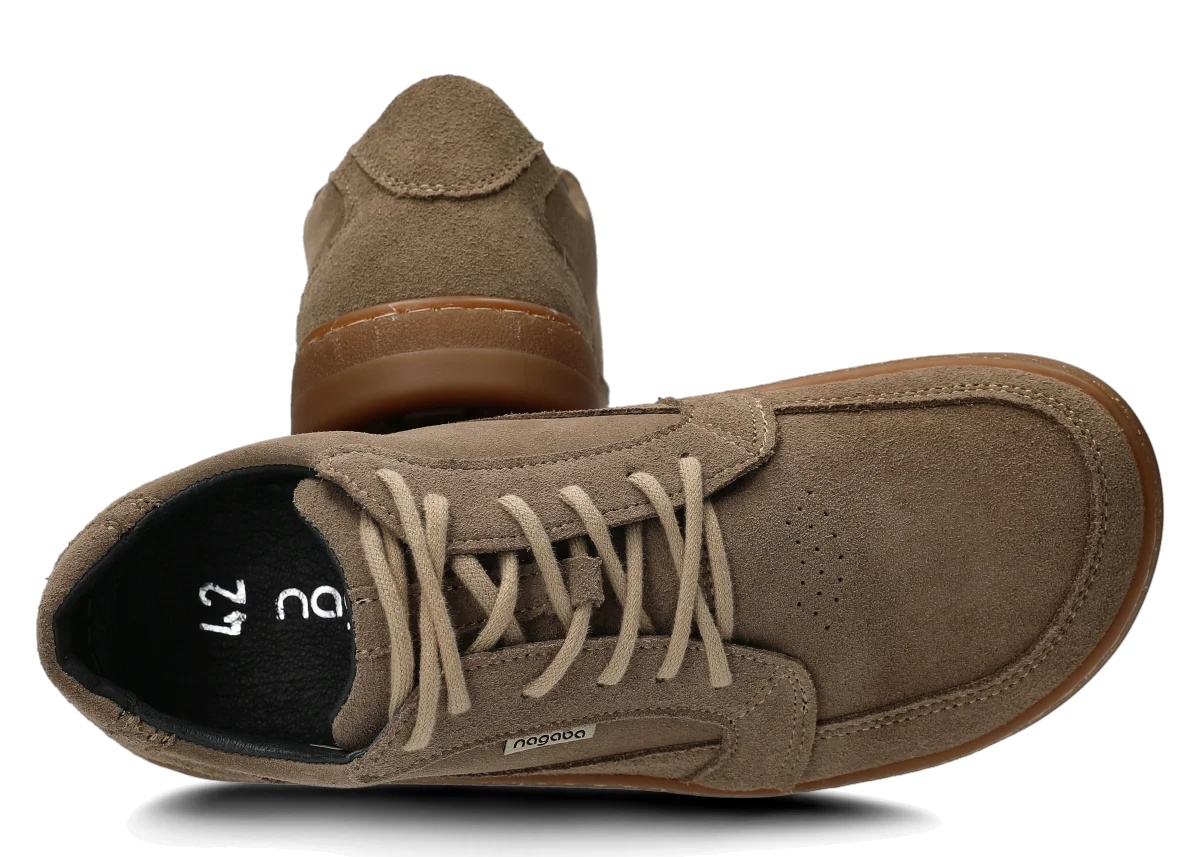 Szerokie półbuty skórzane męskie Nagaba 480 beż welur to ręcznie wykonane w Polsce obuwie, które łączy minimalistyczną elegancję z filozofią barefoot. Szeroka przestrzeń na palce, płaska podeszwa i naturalna skóra typu rustic zapewniają relaks dla stóp – bez ucisków, z pełną swobodą ruchu. Wybierz wariant w kolorze beżowym lub innych odcieniach (bordo, brąz, khaki) dla stylowego, casualowego looku.
