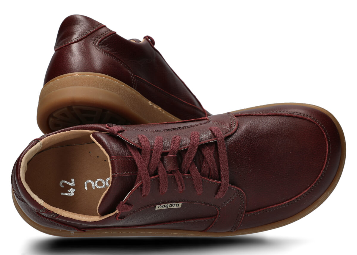 Szerokie półbuty skórzane męskie Nagaba 480 bordo rustic – buty inspirowane barefoot dla komfortu codziennego