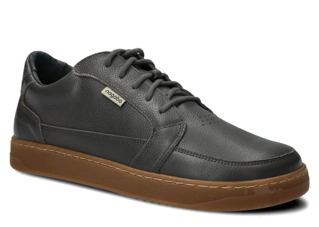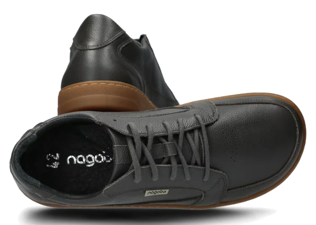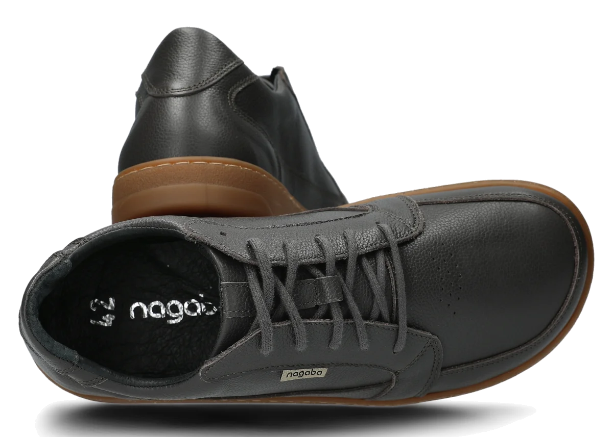 Szerokie półbuty skórzane męskie Nagaba 480 grafit chmurka to ręcznie wykonane w Polsce obuwie, które łączy minimalistyczną elegancję z filozofią barefoot. Szeroka przestrzeń na palce, płaska podeszwa i naturalna skóra typu rustic zapewniają relaks dla stóp – bez ucisków, z pełną swobodą ruchu. Wybierz wariant w kolorze grafitowym lub innych odcieniach (grafit, brąz) dla stylowego, casualowego looku.