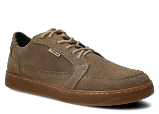 Cholewka z naturalnej skóry typu welur, który powstaje z dolnej warstwy skóry – mizdry – która po oszlifowaniu tworzy charakterystyczny, delikatny meszek. Jak w przypadku każdej skóry szorstkiej, przeciągnięcie palcem po powierzchni pozostawia widoczny, ciemniejszy ślad. Materiał ten jest miękki w dotyku, ma matowe wykończenie i łatwo wchłania wilgoć, pod wpływem której ciemnieje. Kolory jednolite, delikatnie przyciemniające się przy natłuszczaniu. Wnętrze ze świńskiej skóry naturalnej gwarantuje higienę i wentylację. Podeszwa TR-termokauczuk – klejona i przyszywana obwodowo – jest antypoślizgowa i płaska na całej długości.