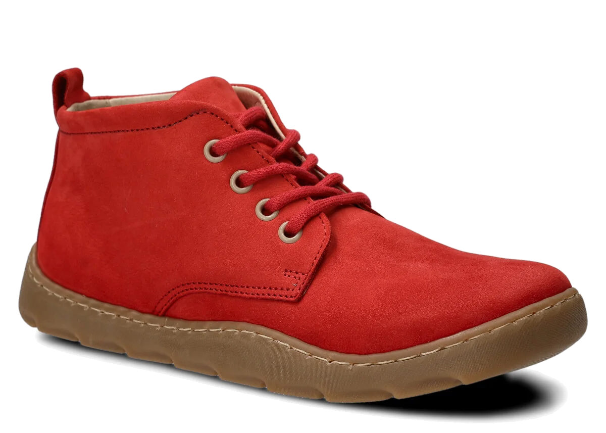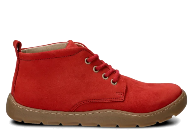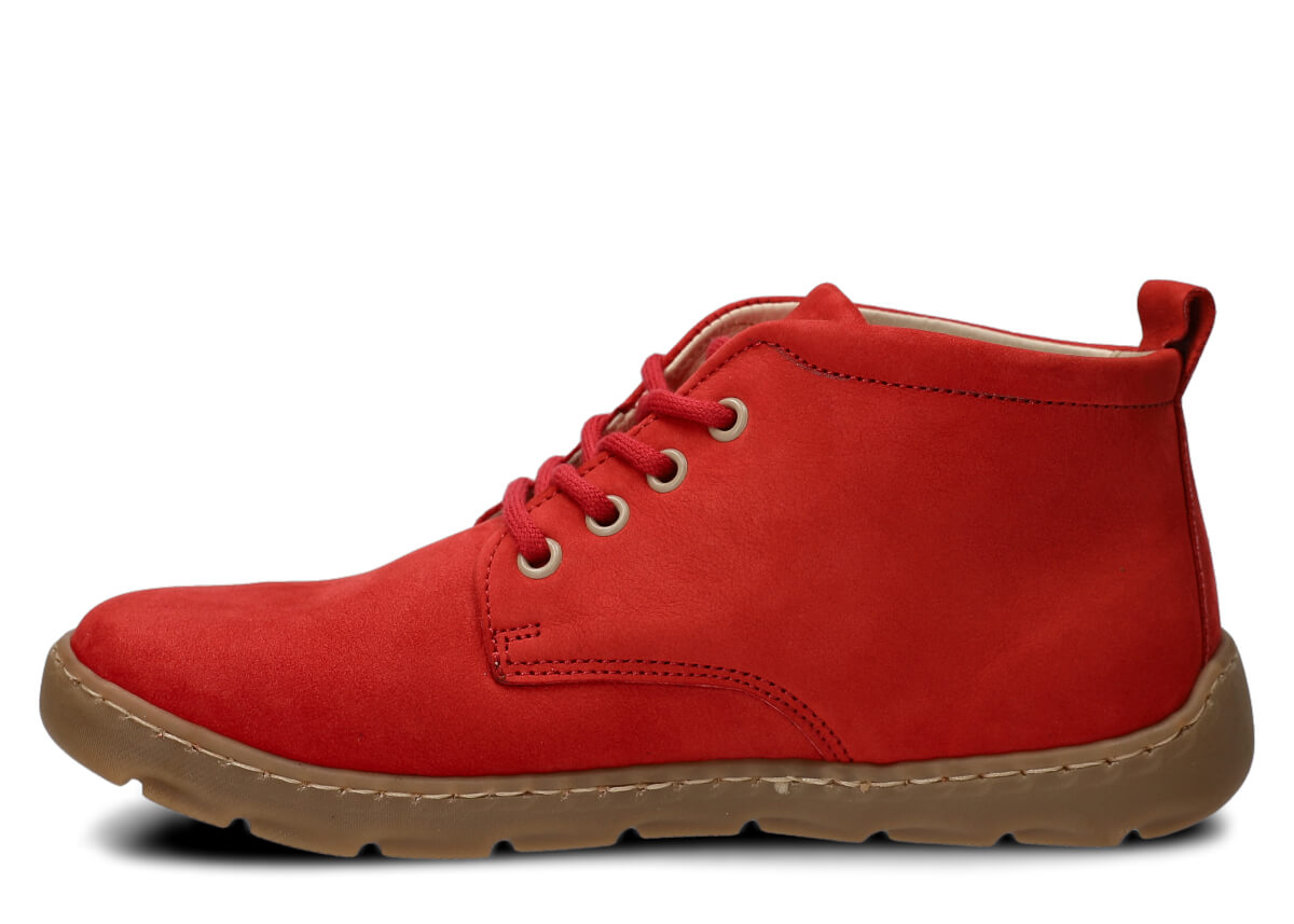 Szerokie trzewiki damskie Nagaba 631 czerwony samuel skórzane – komfort i styl barefoot, to odpowiednik naszego modelu 630, ale w wersji wysokiej.