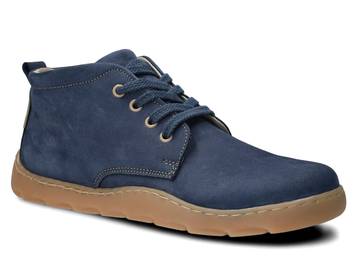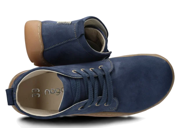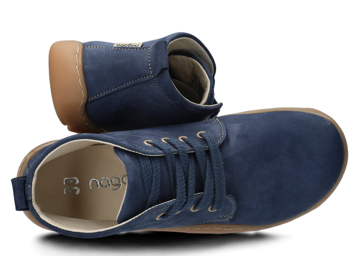 Szerokie trzewiki damskie Nagaba 631 granatowy samuel skórzane – komfort i styl barefoot, to odpowiednik naszego modelu 630, ale w wersji wysokiej.