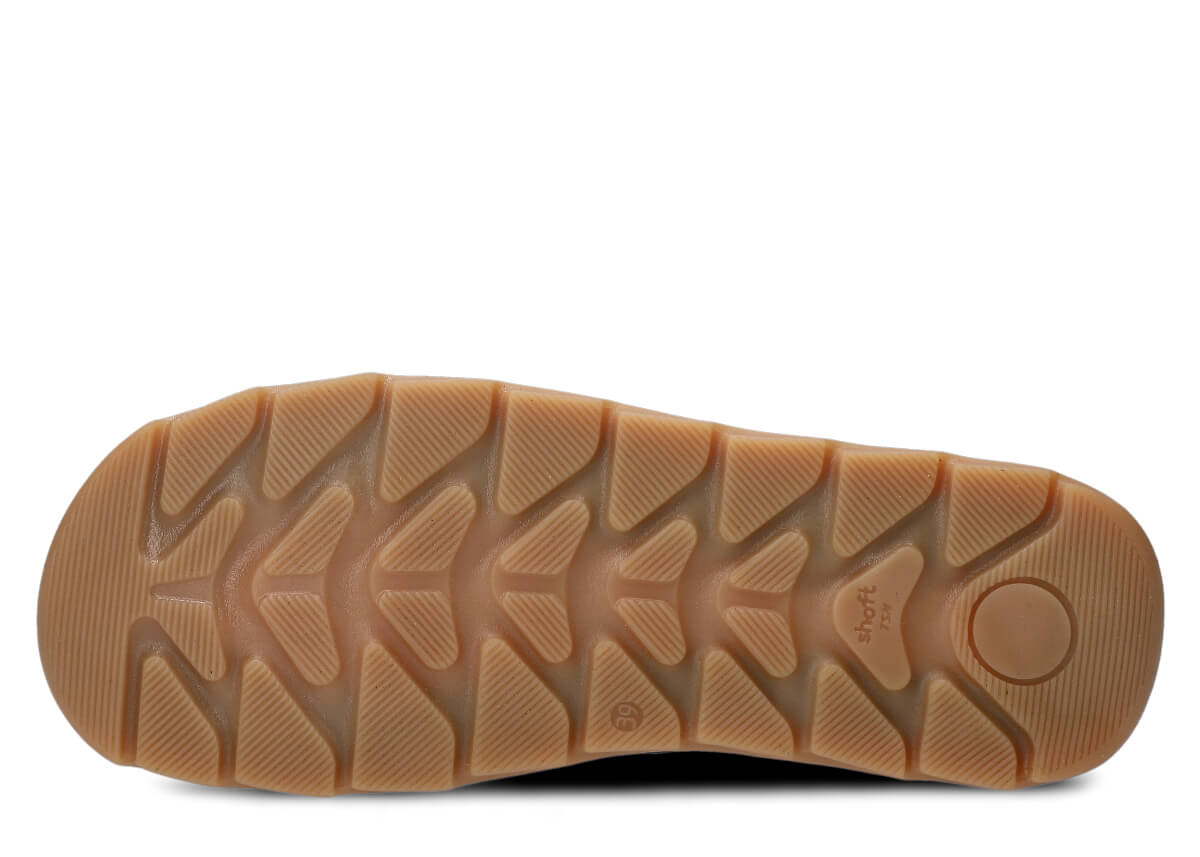 Naturalne materiały najwyższej jakości. Wierzch i wnętrze: miękka skóra naturalna. Oddychający materiał – stopa nie przegrzewa się nawet po całym dniu. Czarna podeszwa z TR-Termokauczuku – wytrzymała, antypoślizgowa, lekko elastyczna i pięknie kontrastująca z kolorem cholewki. Komfort stworzony dla wymagających stóp. Szeroki nosek nie uciska palców – palce mają pełną swobodę ruchu, co jest szczególnie ważne przy: szerokich stopach, haluksach, opuchliźnie, potrzebie butów ortopedycznych.