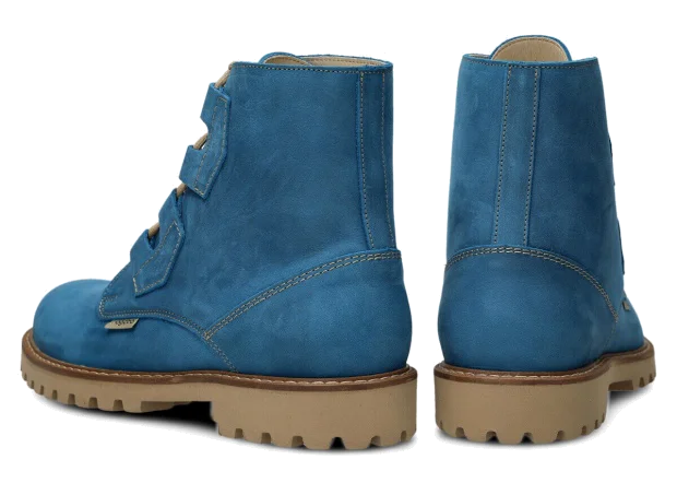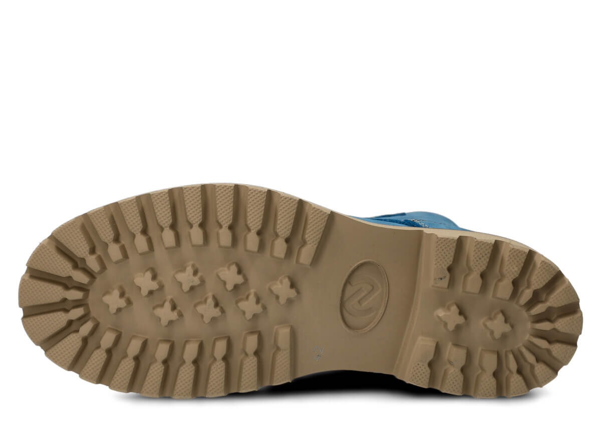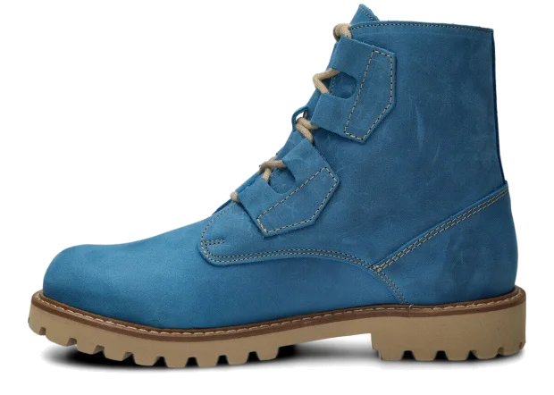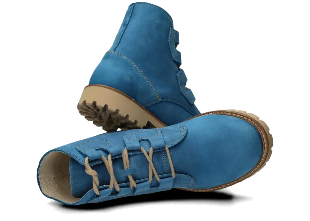 Blue - skóra licowa, o delikatnym matowym wykończeniu. Miękka, mięsista, bardzo plastyczna. Jednocześnie bardzo wytrzymała. Doskonale nadaje się do obuwia typu botek, kozak. Buty wykonane z tej skóry mają elegancki wygląd.