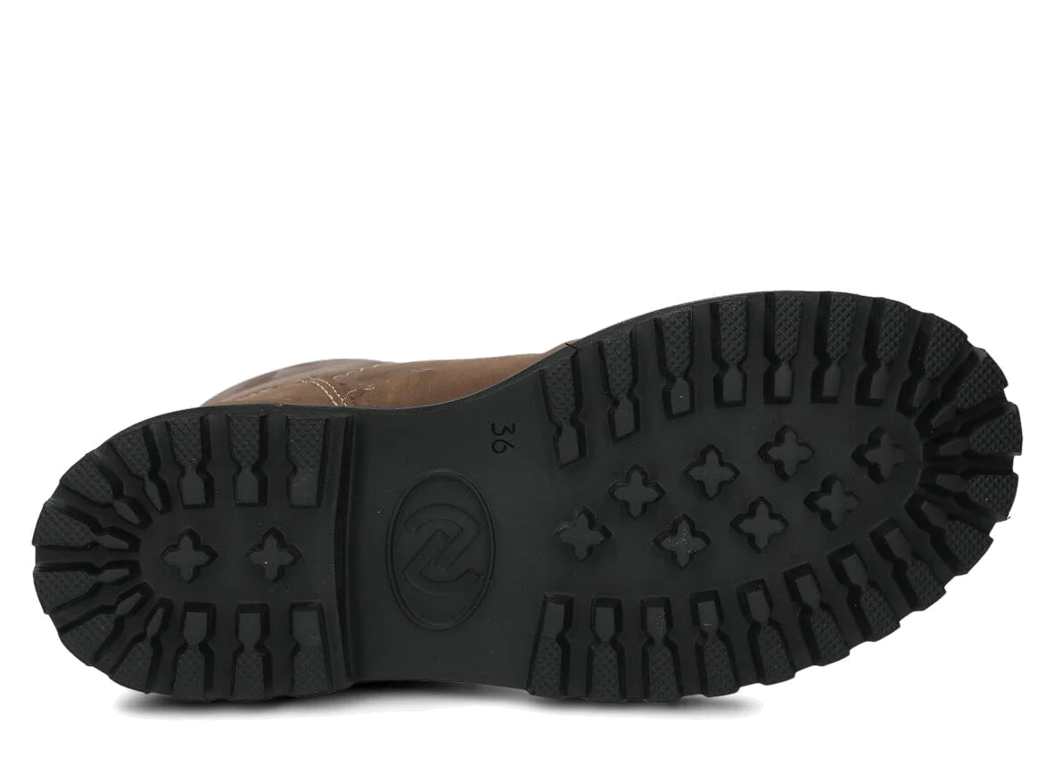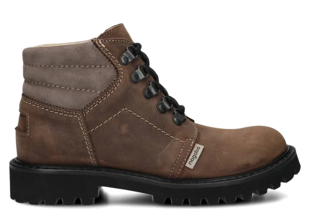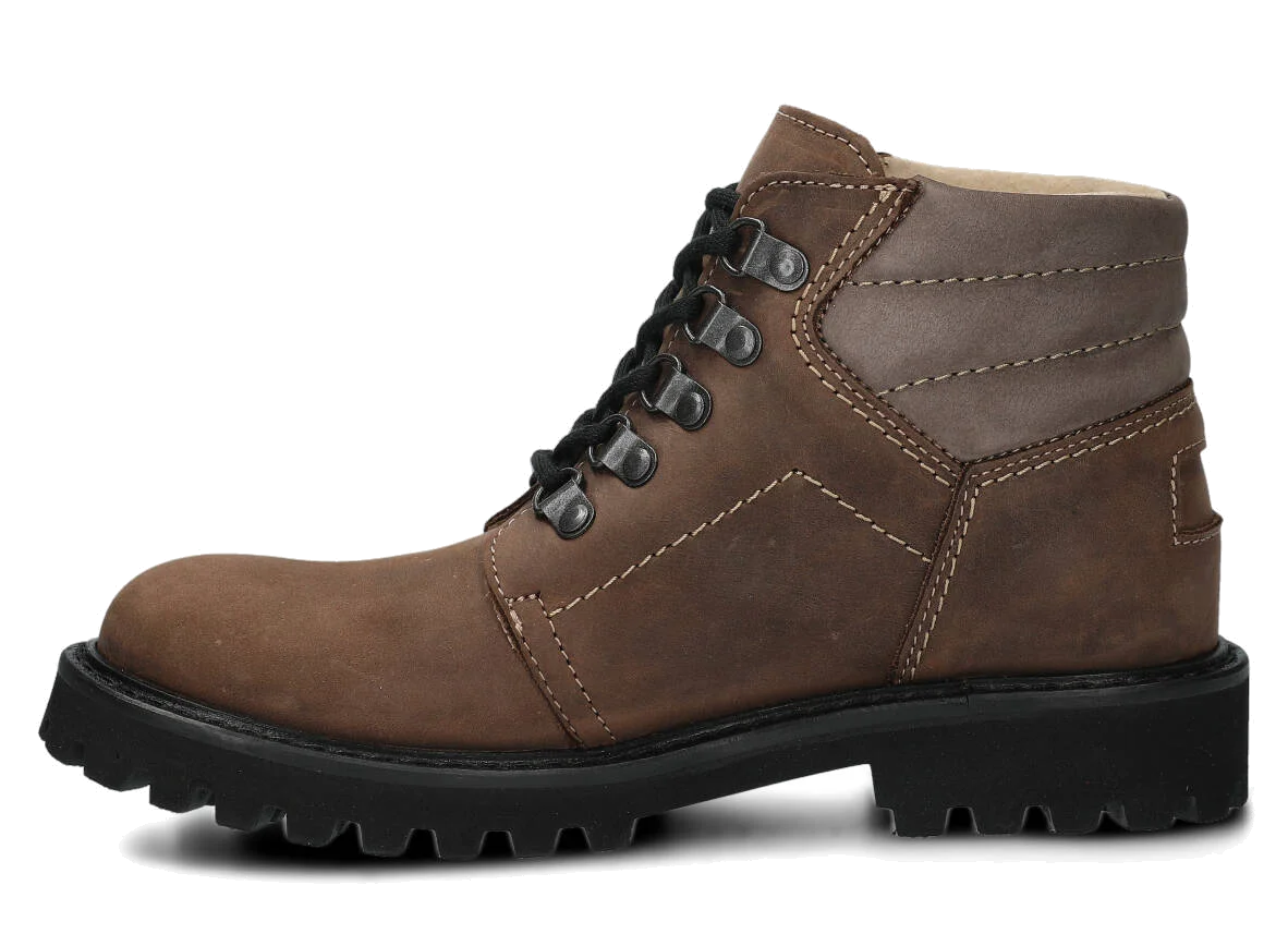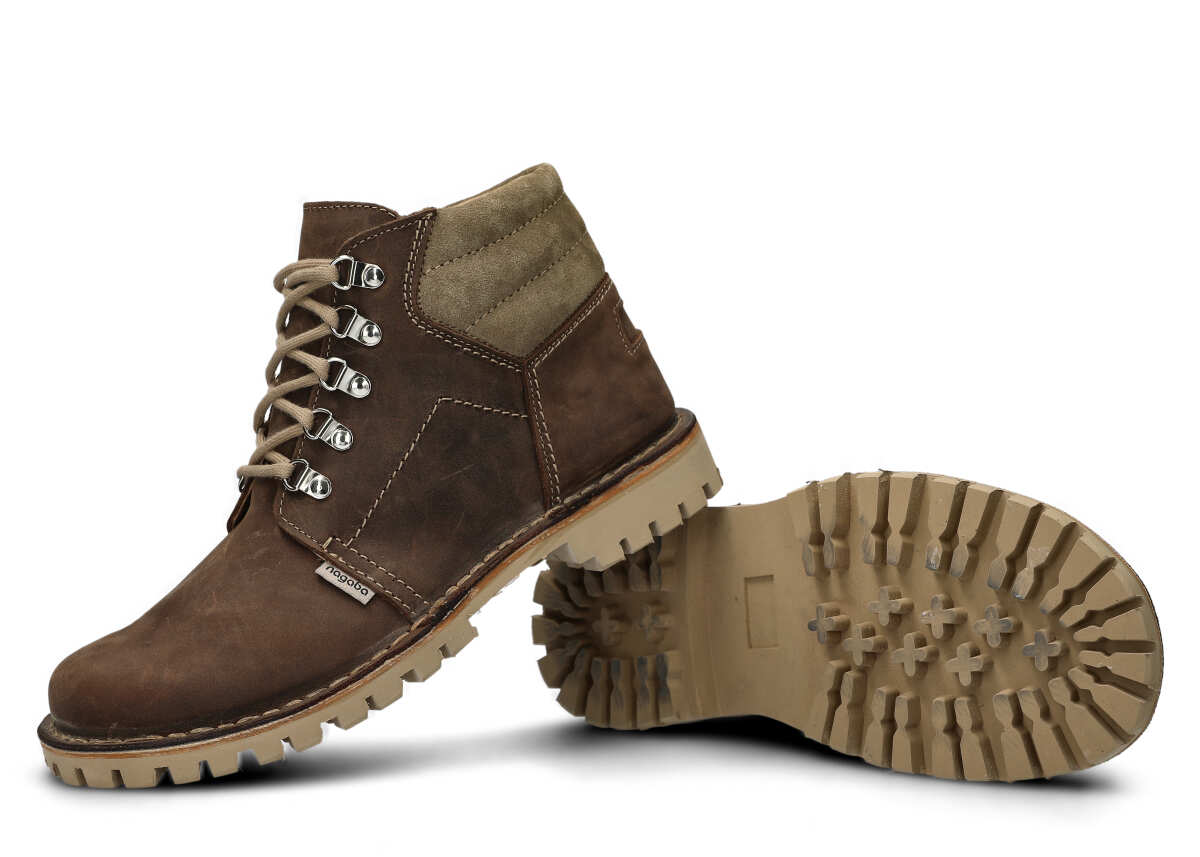 Efekt ten jest rezultatem przede wszystkim zastosowania skóry naturalnej typu crazy, a także super lekkiej podeszwy EVA ze śladem traperka.