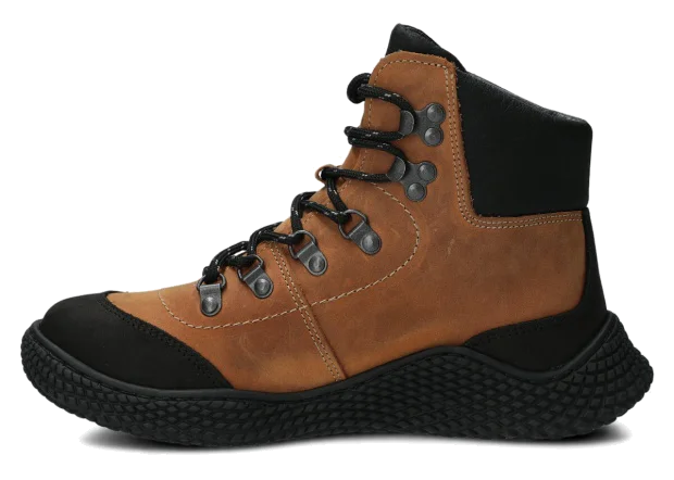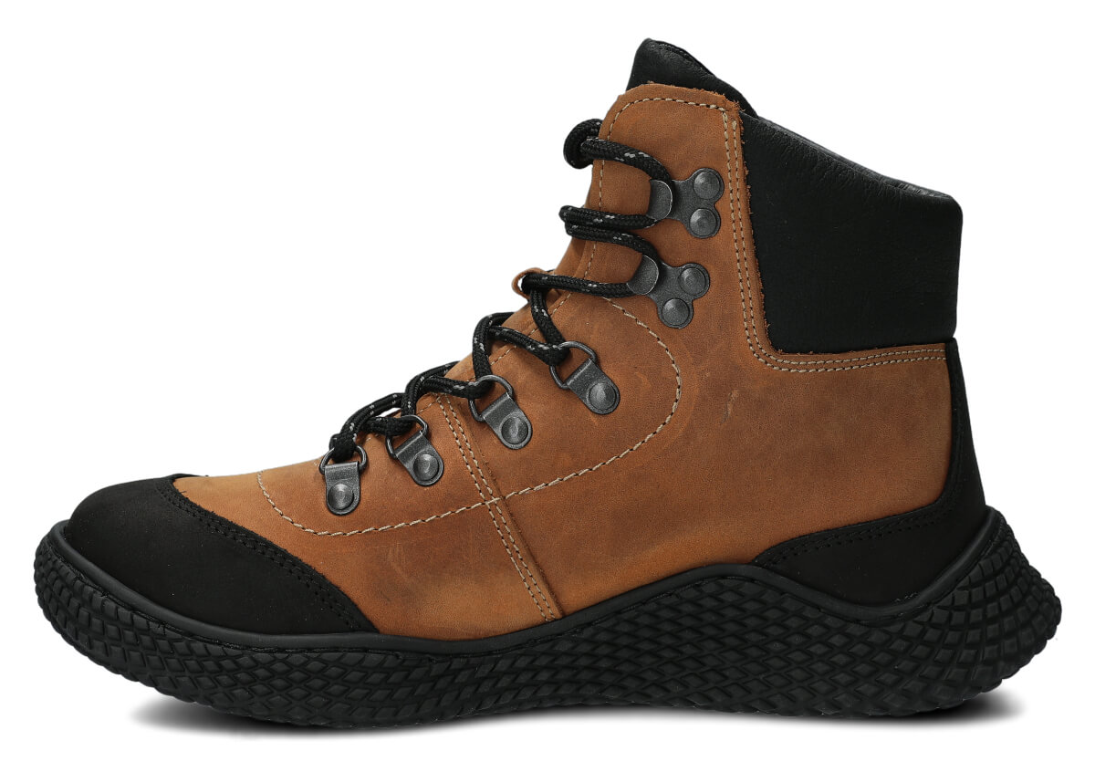Trzewiki damskie skórzane Nagaba 624 brązowy crazy – młodzieżowe buty za kostkę na jesień i zimę