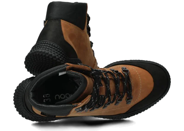 Trzewiki damskie Nagaba 624 brąz crazy to model, który idealnie trafia w gust kobiet i nastolatek – łączy sportową energię z codzienną elegancją. Wysoka cholewka za kostkę, kontrastowe połączenie brązowej i czarnej skóry typu crazy oraz ręczne wykonanie w Polsce sprawiają, że te trzewiki młodzieżowe wyglądają nowocześnie, a jednocześnie są niezwykle wytrzymałe i wygodne.
