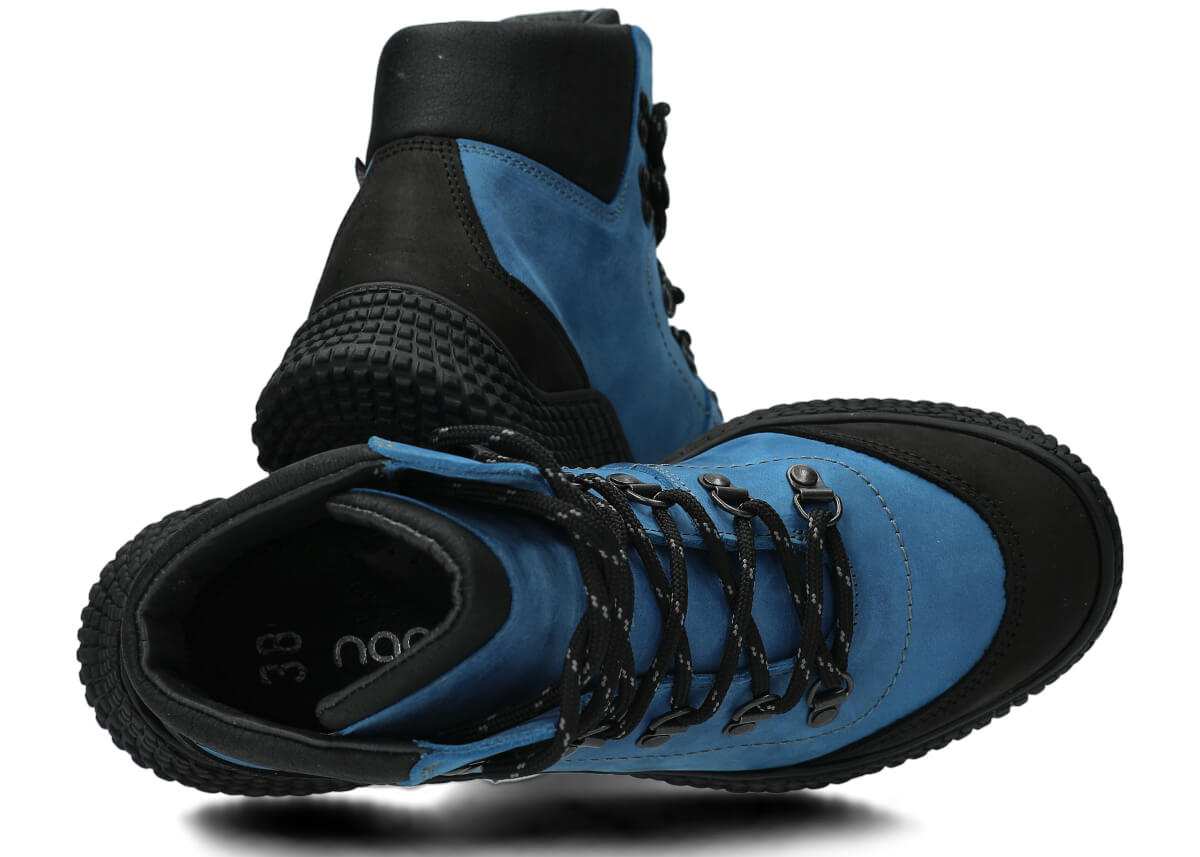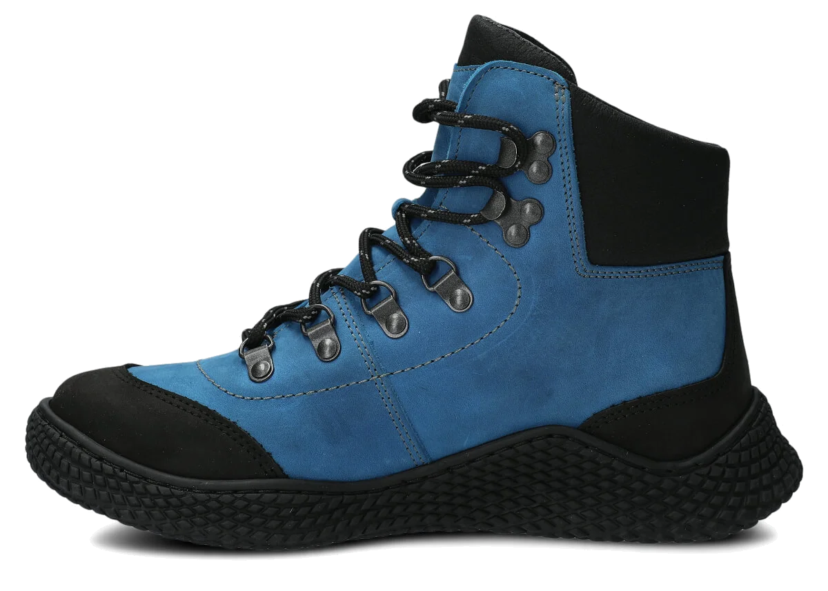 Trzewiki damskie Nagaba 624 kobalt crazy to model, który idealnie trafia w gust kobiet i nastolatek – łączy sportową energię z codzienną elegancją. Wysoka cholewka za kostkę, kontrastowe połączenie kobaltowej i czarnej skóry typu crazy oraz ręczne wykonanie w Polsce sprawiają, że te trzewiki młodzieżowe wyglądają nowocześnie, a jednocześnie są niezwykle wytrzymałe i wygodne.