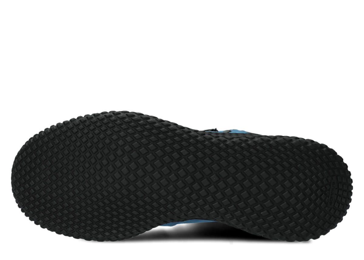Cholewka składająca się z kombinacji dwóch skór crazy, dominująca kobaltowa skóra naturalna typu crazy w połączeniu z czarnymi wstawkami na nosku, tylniku i kołnierzu tworzy bardzo charakterystyczny, miejsko-outdoorowy wygląd. Gruba, mięsista, olejowana skóra z naturalnymi plamami, przetarciami i zarysowaniami – każda para jest trochę inna, co daje poczucie unikalności.
