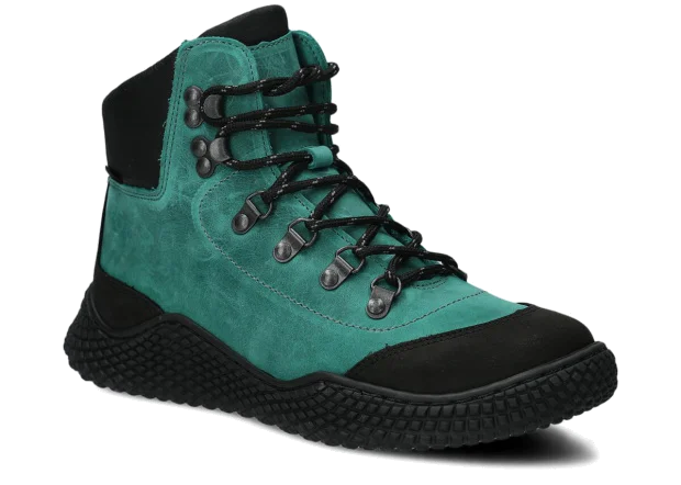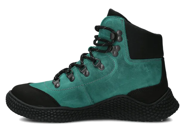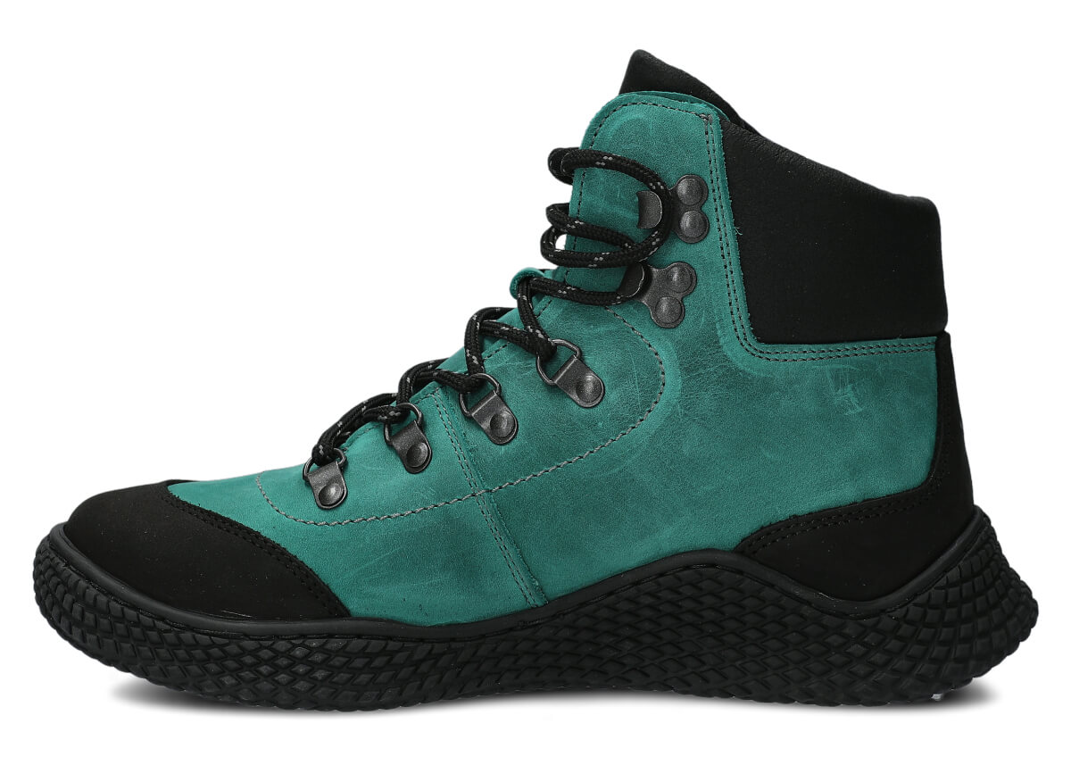 Trzewiki damskie skórzane Nagaba 624 szmaragdowy crazy – młodzieżowe buty za kostkę na jesień i zimę
