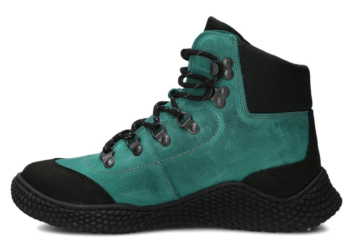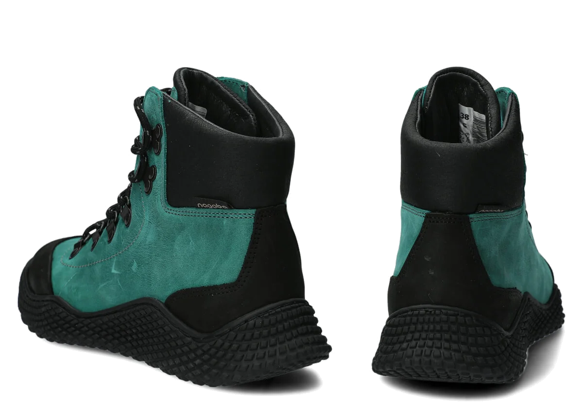Trzewiki damskie Nagaba 624 szmaragd crazy to model, który idealnie trafia w gust kobiet i nastolatek – łączy sportową energię z codzienną elegancją. Wysoka cholewka za kostkę, kontrastowe połączenie szmaragdowej i czarnej skóry typu crazy oraz ręczne wykonanie w Polsce sprawiają, że te trzewiki młodzieżowe wyglądają nowocześnie, a jednocześnie są niezwykle wytrzymałe i wygodne.