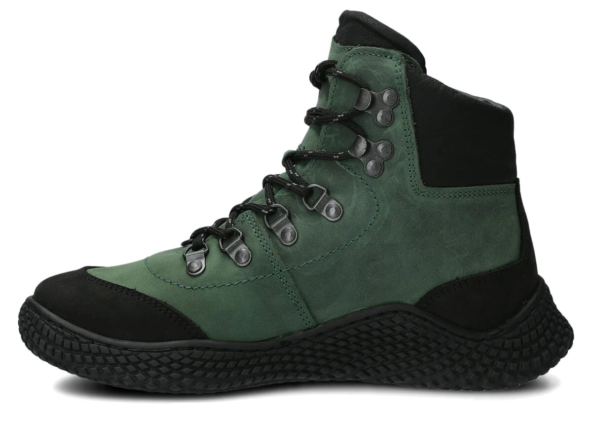 Trzewiki damskie Nagaba 624 zielony crazy to model, który idealnie trafia w gust kobiet i nastolatek – łączy sportową energię z codzienną elegancją. Wysoka cholewka za kostkę, kontrastowe połączenie zielonej i czarnej skóry typu crazy oraz ręczne wykonanie w Polsce sprawiają, że te trzewiki młodzieżowe wyglądają nowocześnie, a jednocześnie są niezwykle wytrzymałe i wygodne.