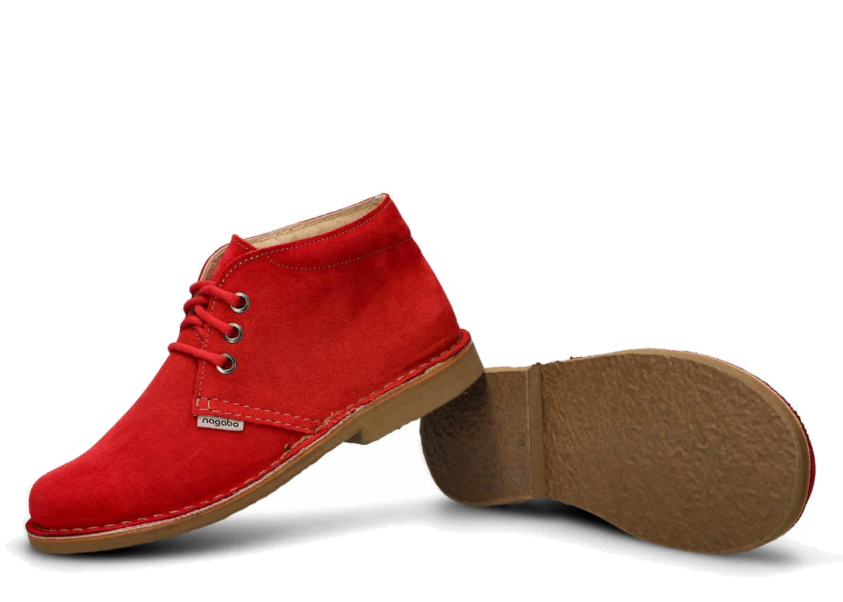 Przygotowaliśmy propozycje ze skóry welurowej, które dostępne są w kolorze czerwonym. Buty można zakupić od rozmiaru 36 do 40.
