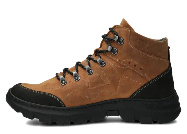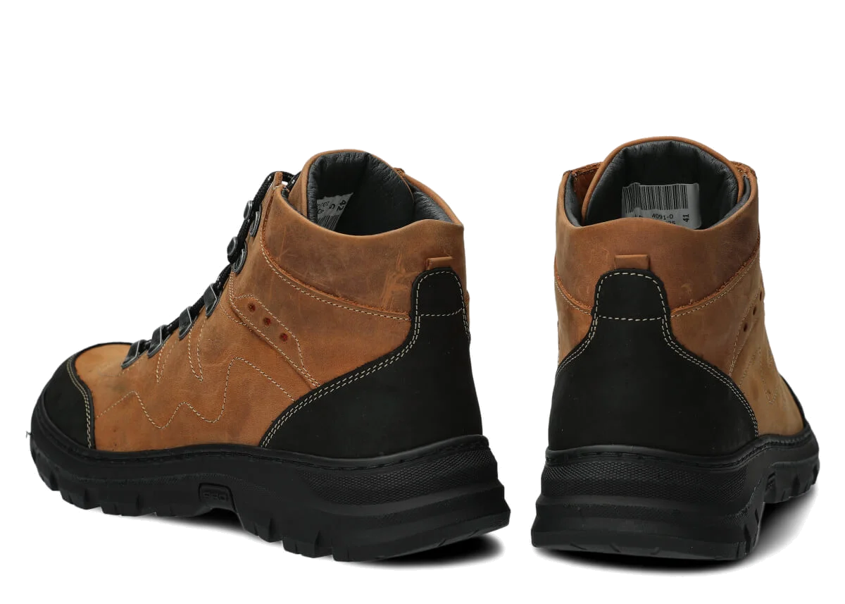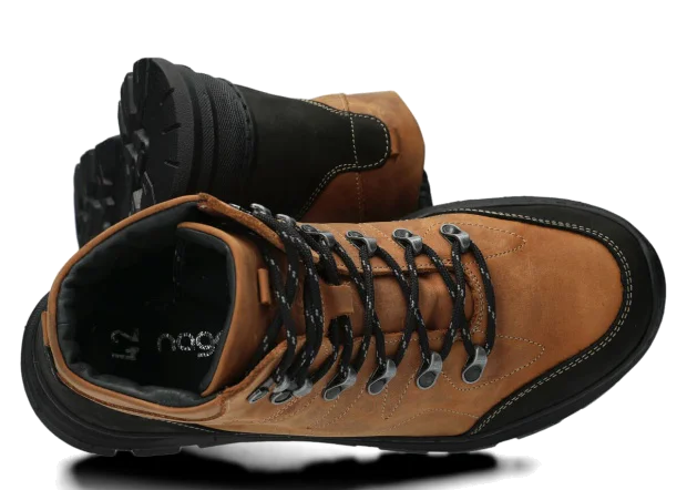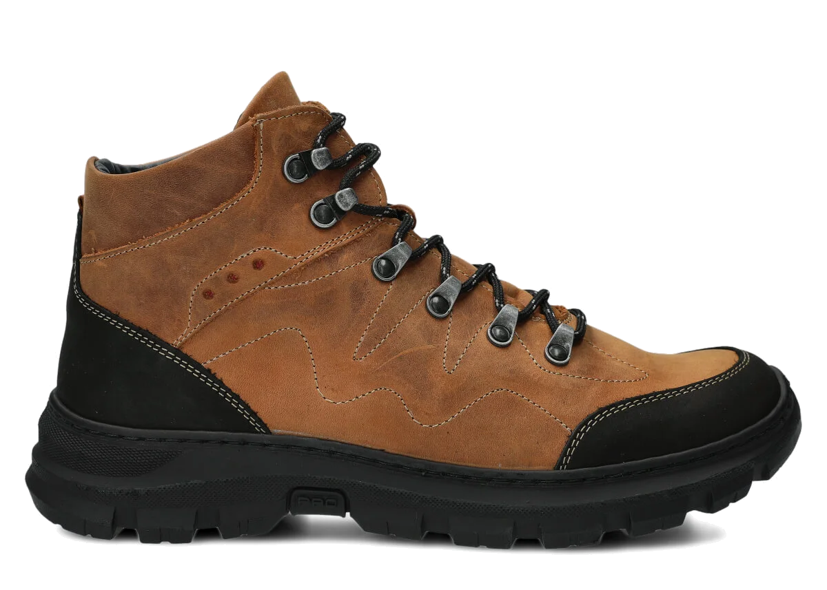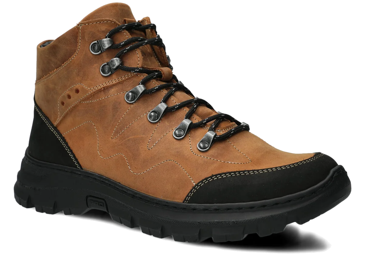 Trzewiki trekkingowe męskie skórzane Nagaba 4091 brąz crazy – wytrzymałe buty za kostkę na jesień, zimę i wiosnę